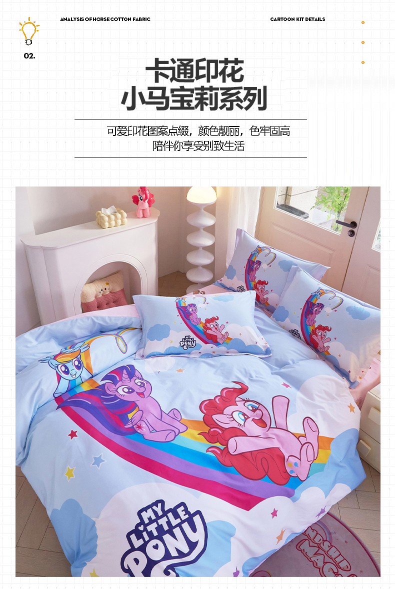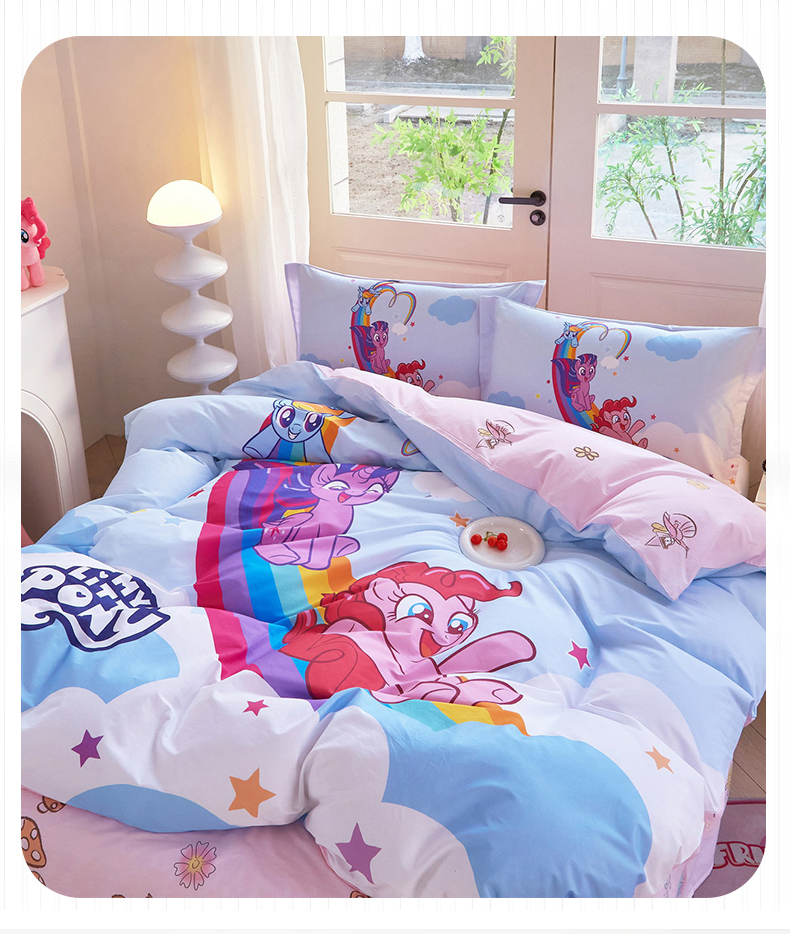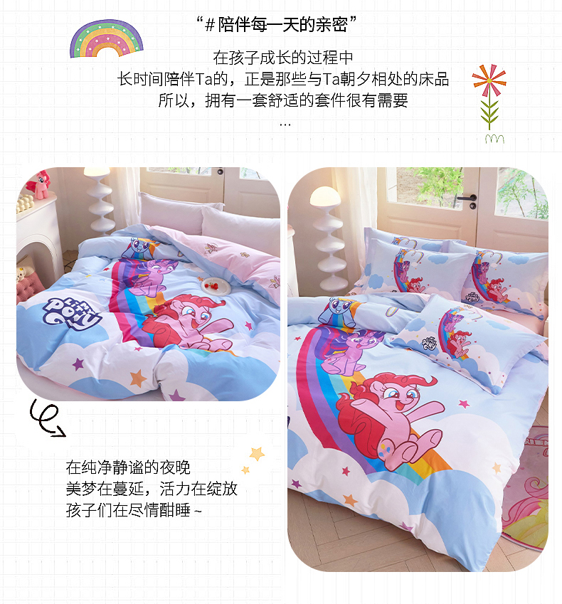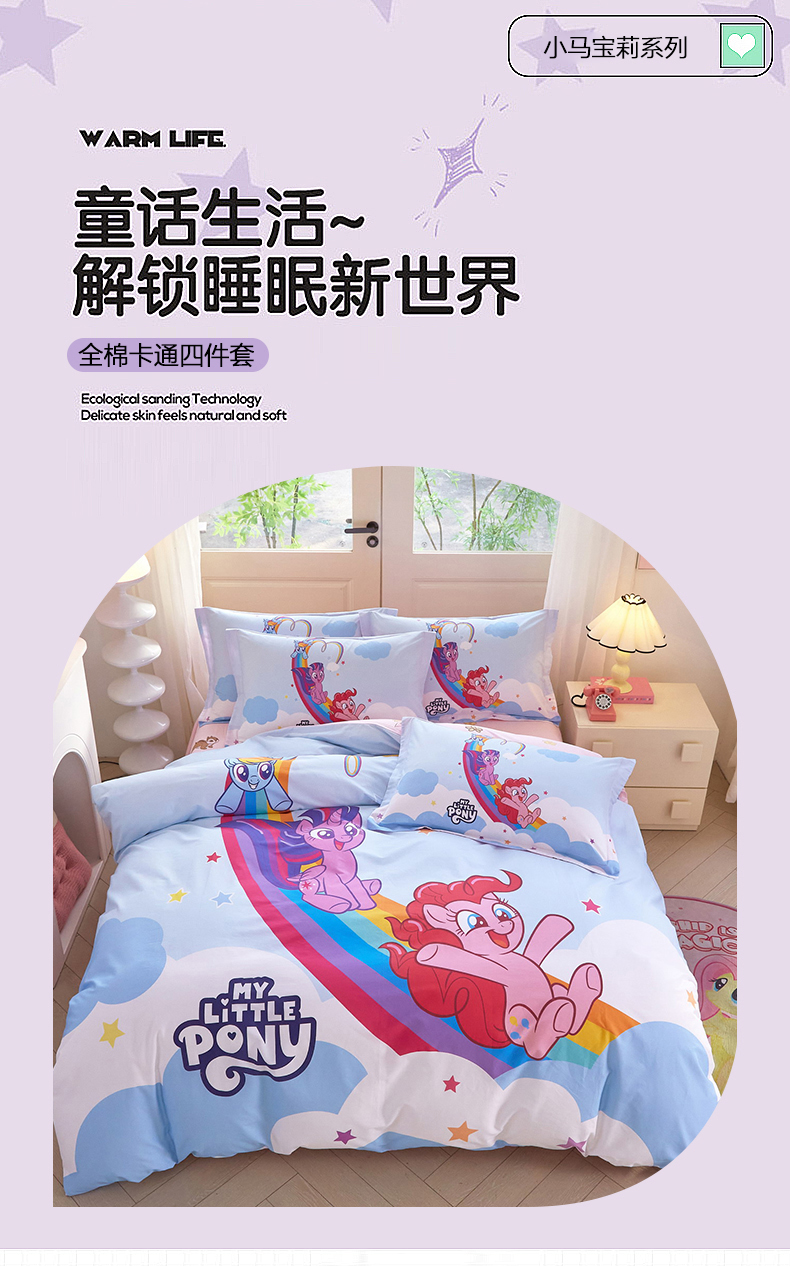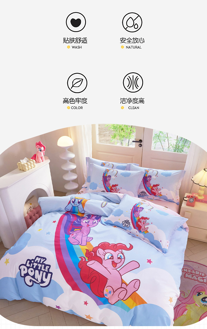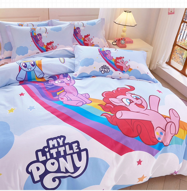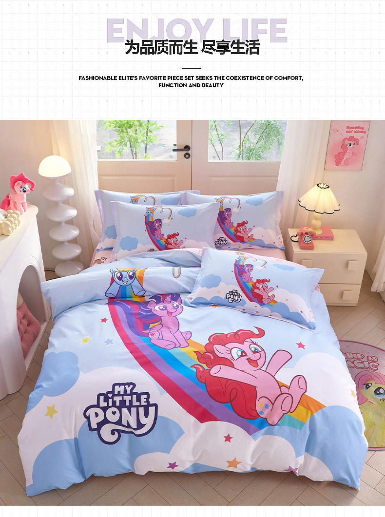当前位置: 91家纺网 > 商品网购 > 床品套件 > 四件套 > 全棉普通四件套 > 蘭菲家纺 2026新款全棉纯棉大版卡通四件套-小马宝莉 嗨皮.宝莉