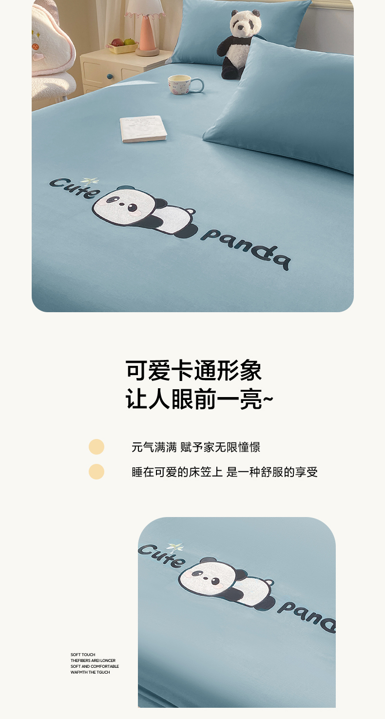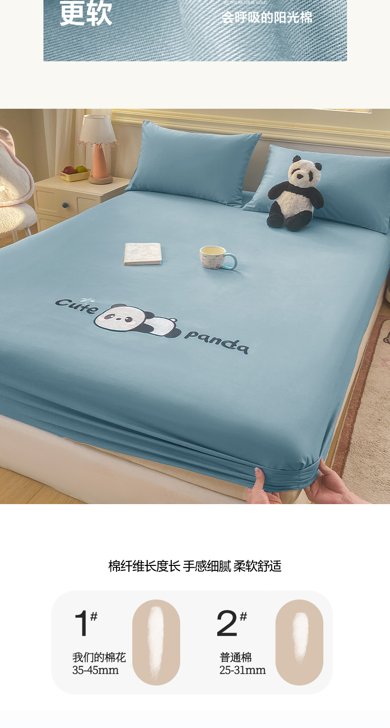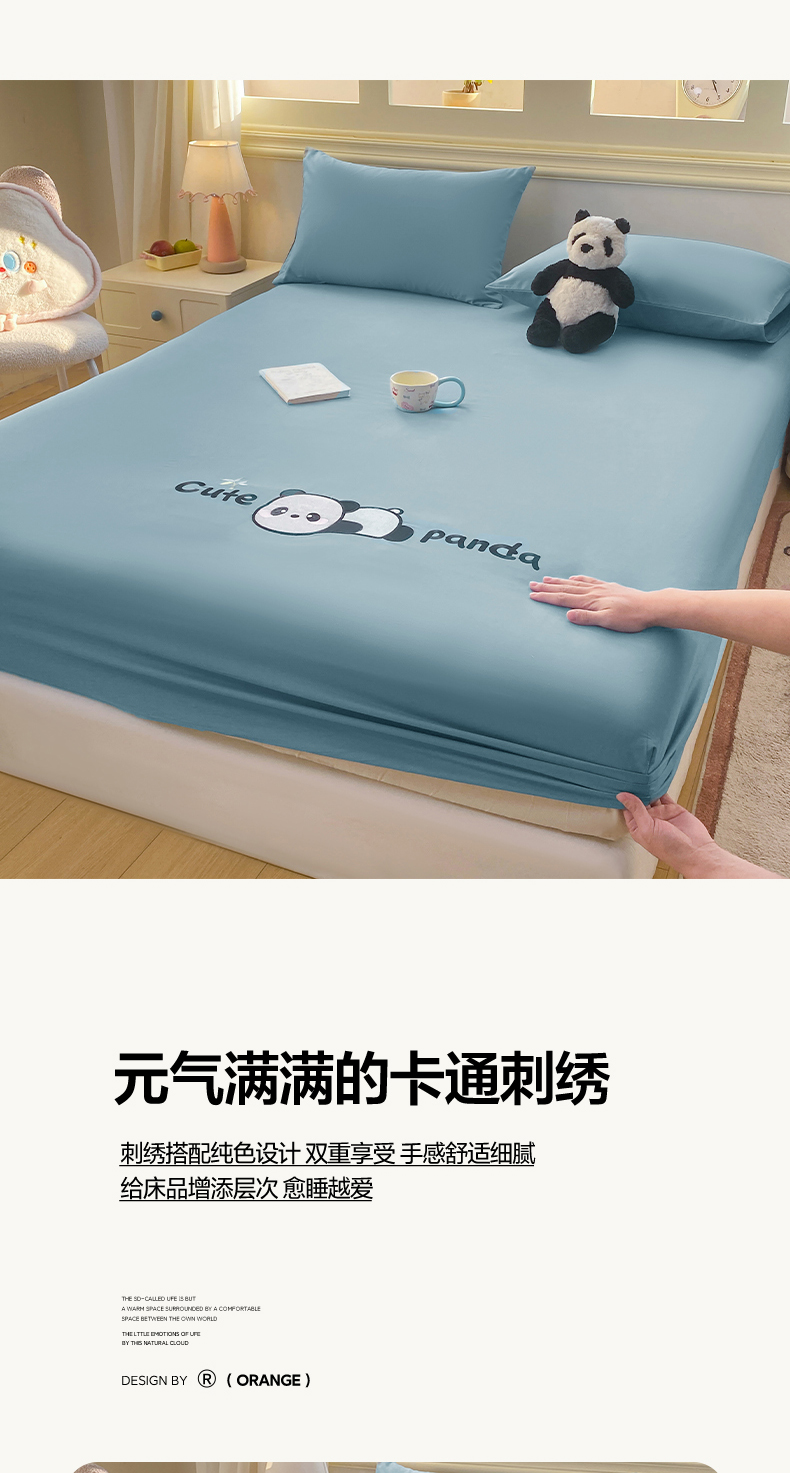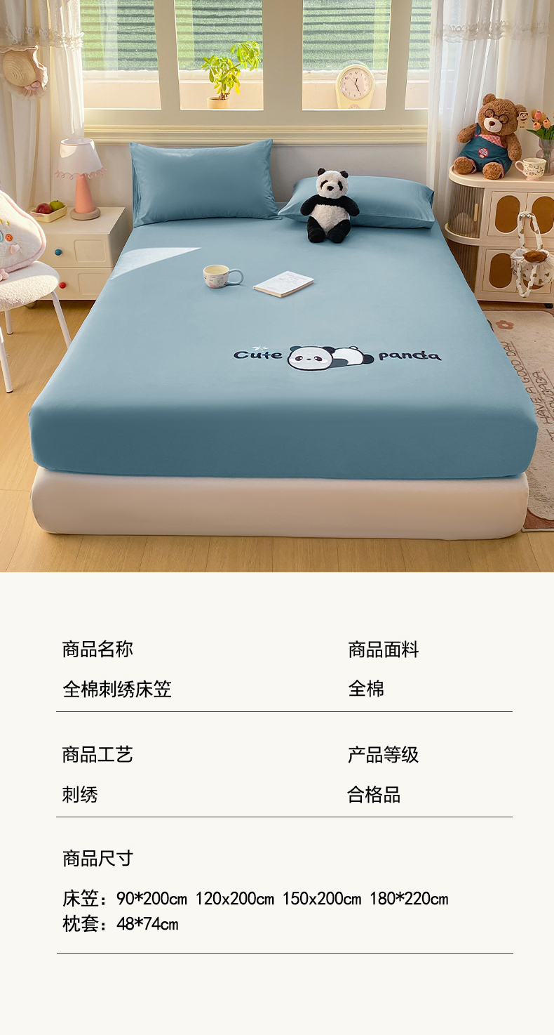 恋人优选 2026新款爬爬熊刺绣全棉纯棉单床笠床笠单件(专版花型 盗版必究) 爬爬熊刺绣浅蓝