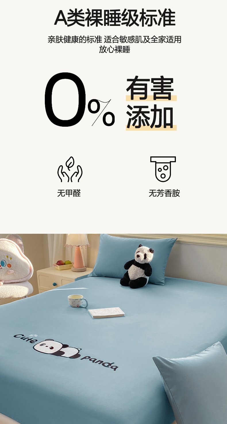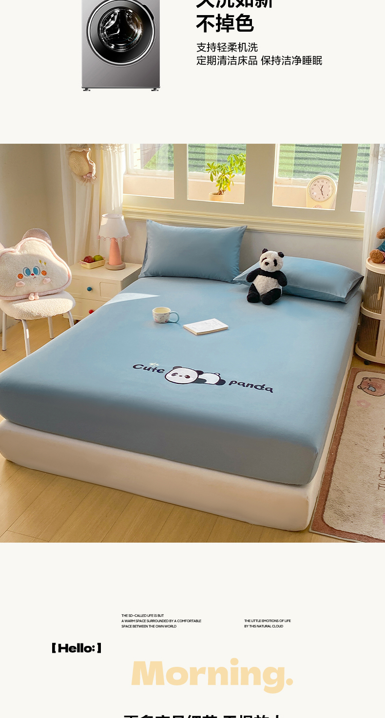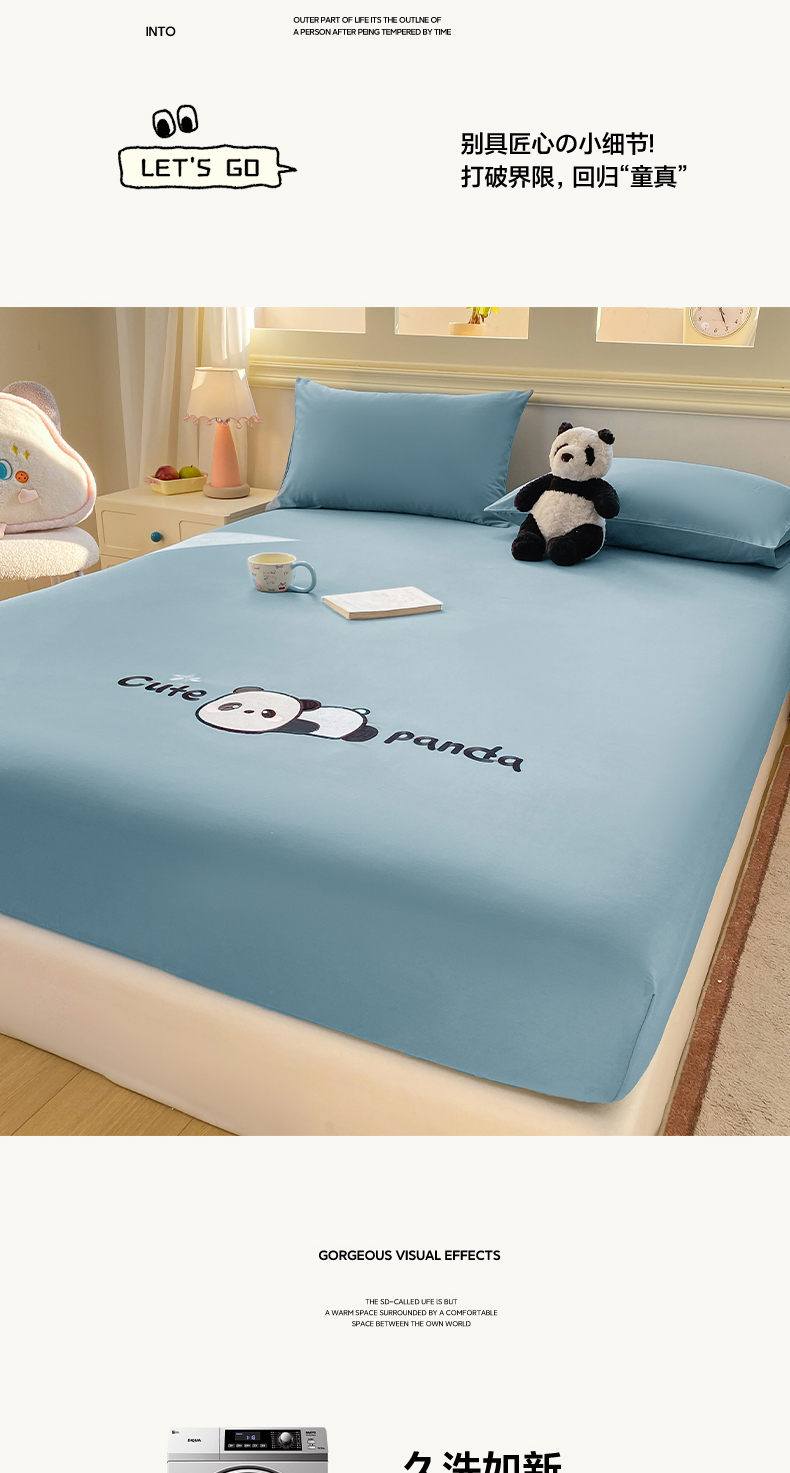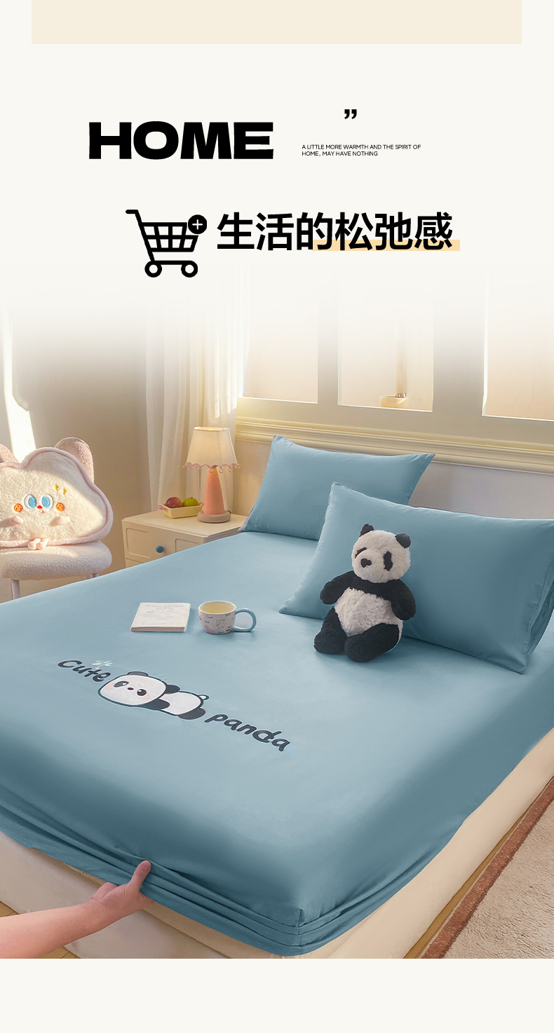 恋人优选 2026新款爬爬熊刺绣全棉纯棉单床笠床笠单件(专版花型 盗版必究) 爬爬熊刺绣浅蓝