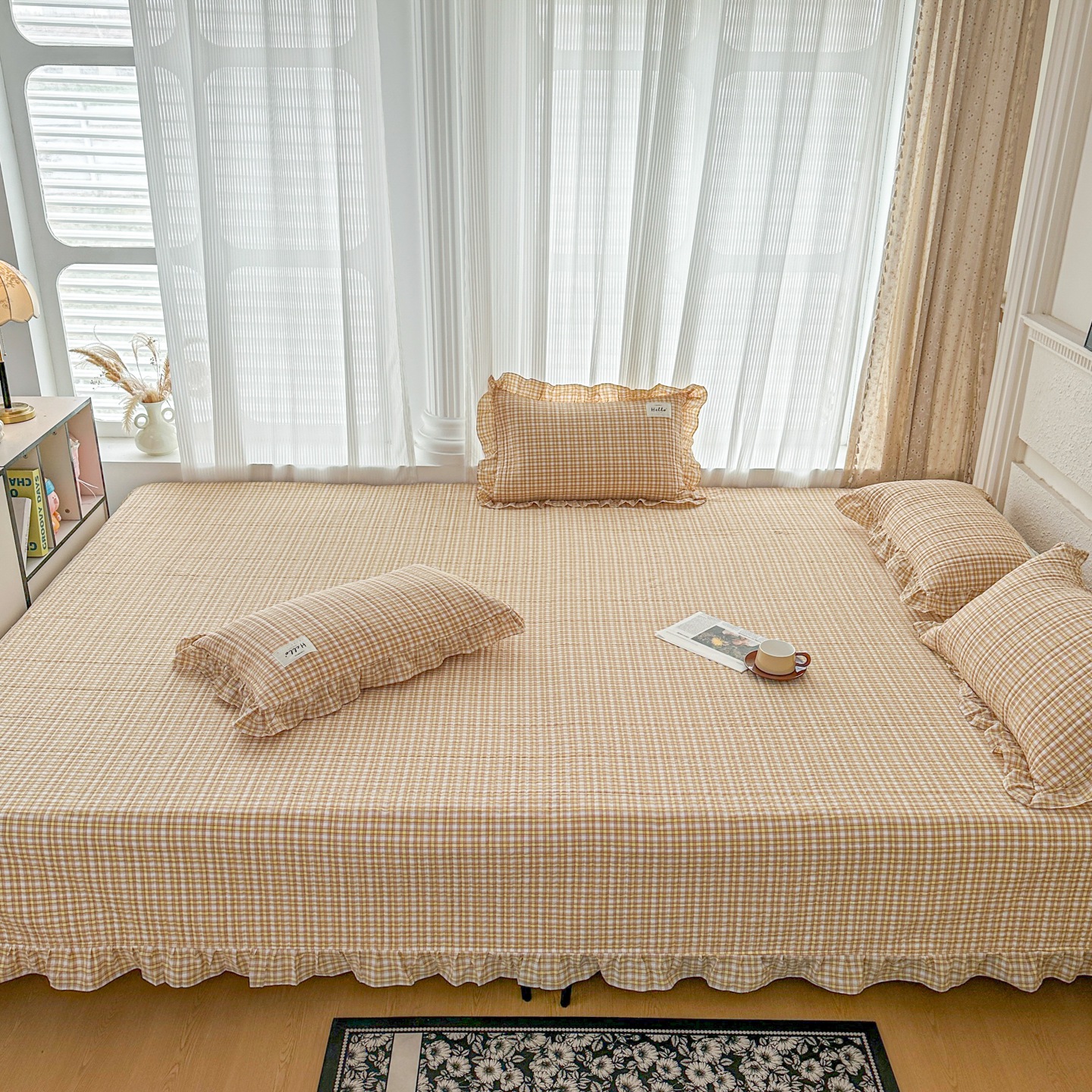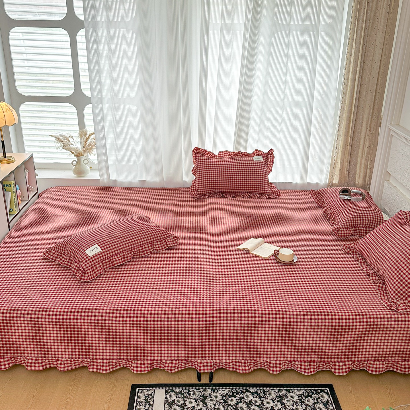 (总)暖居 2026新款全棉纯棉色织榻榻米三件套四件套单件大炕盖支持定制,黄小格,经典红咖格,经典咖小格,蓝格子,抹茶绿,紫色格子