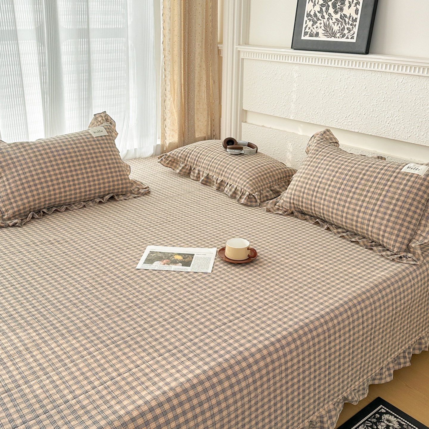 商品名称:暖居 2026新款全棉纯棉色织榻榻米三件套四件套单件大炕盖支持定制 经典咖小格
