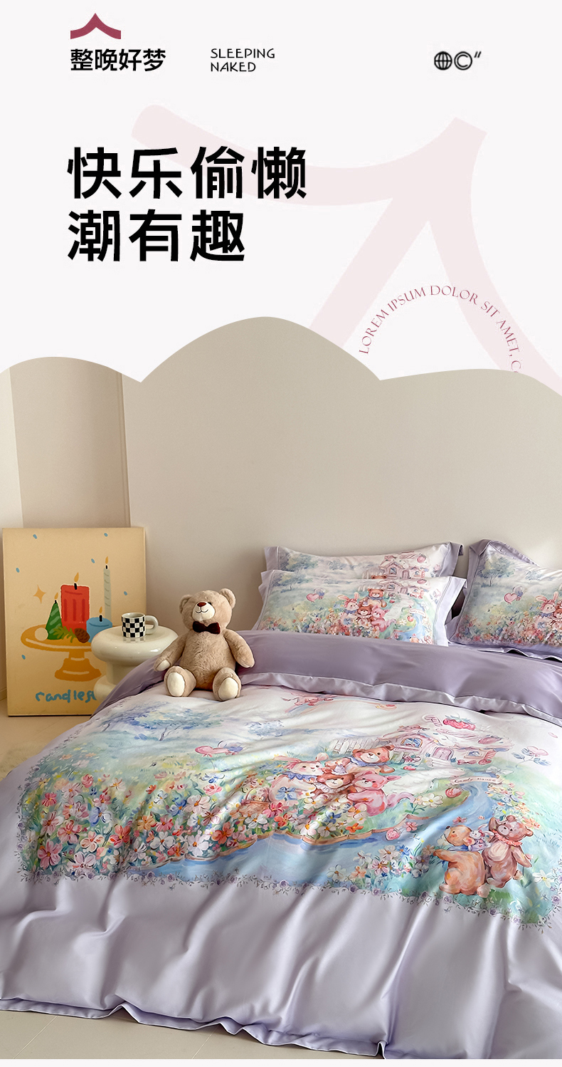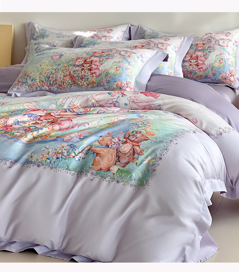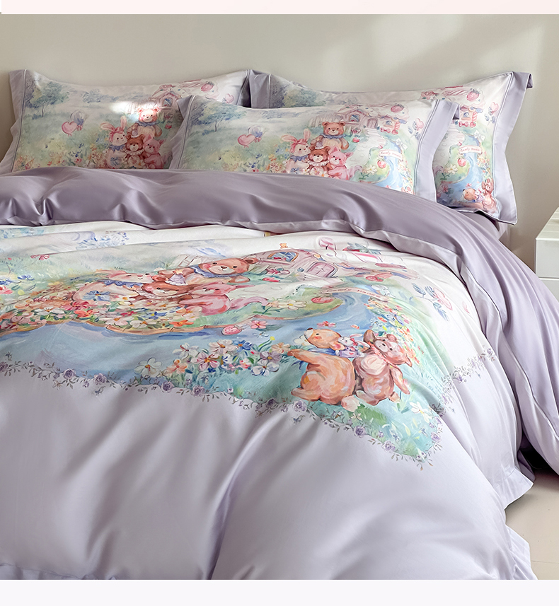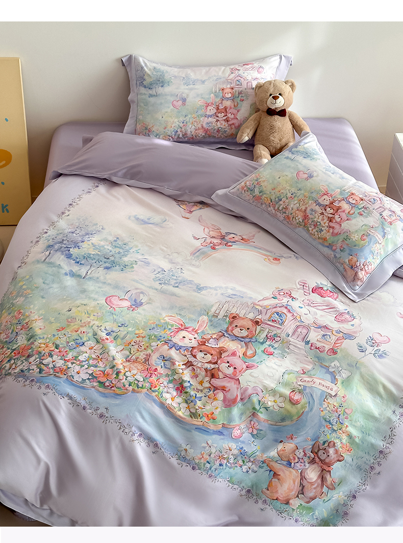 当前位置: 91家纺网 > 商品网购 > 床品套件 > 四件套 > 全棉普通四件套 > 禾时 2026新款全棉数码手绘油画卡通四件套 彩虹派对(紫)