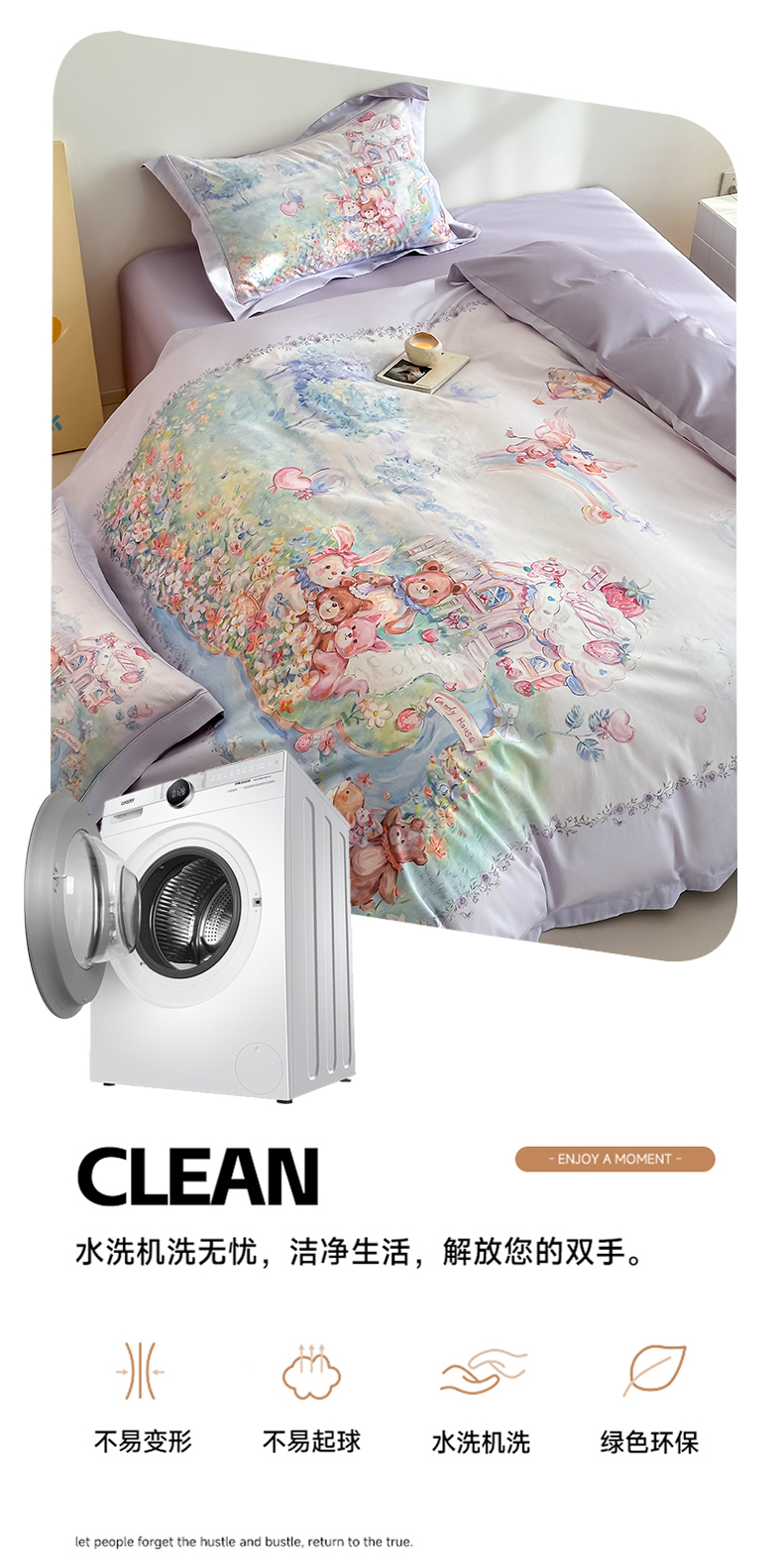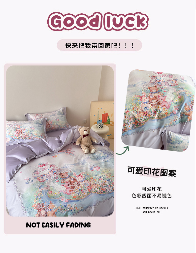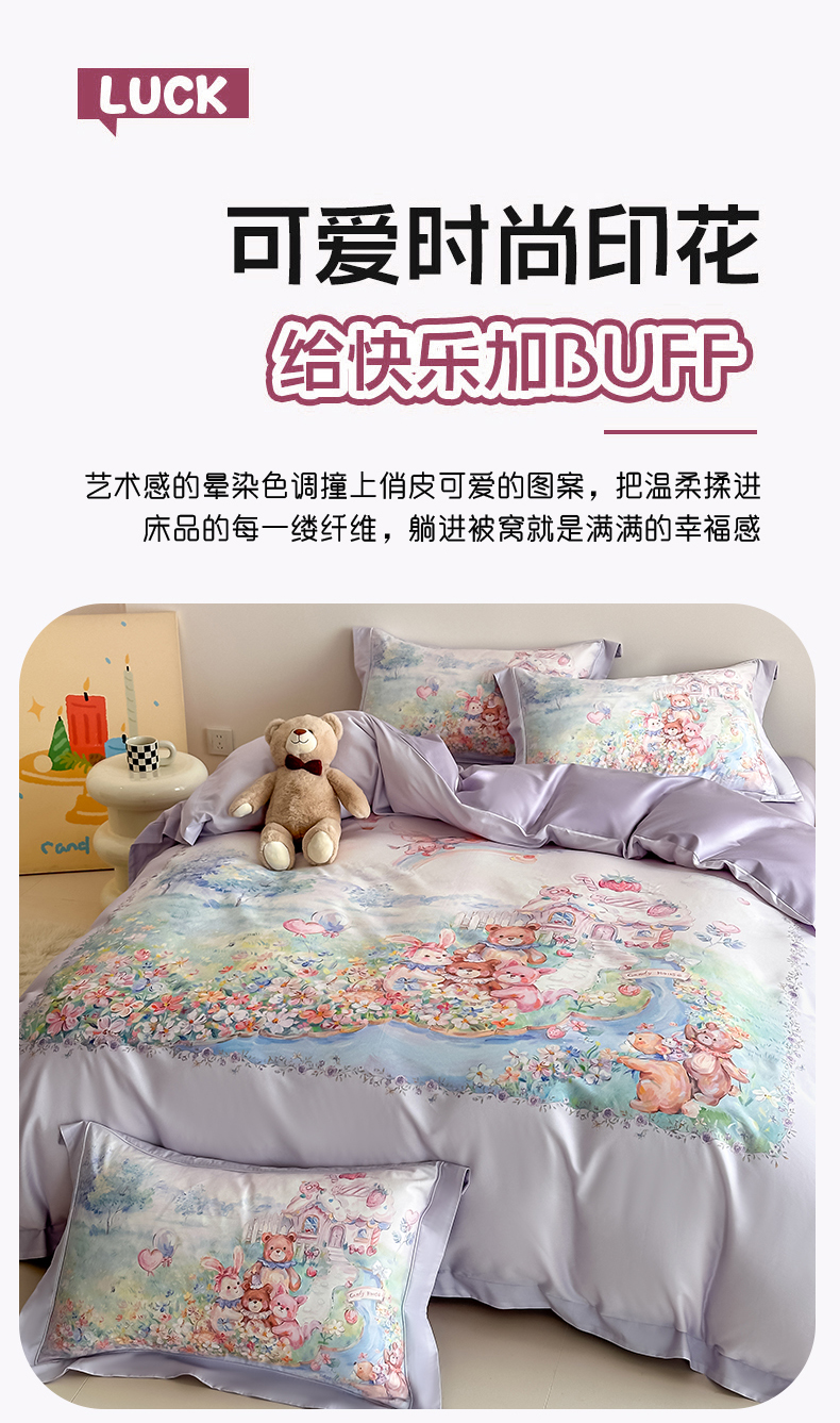 当前位置: 91家纺网 > 商品网购 > 床品套件 > 四件套 > 全棉普通四件套 > 禾时 2026新款全棉数码手绘油画卡通四件套 彩虹派对(紫)
