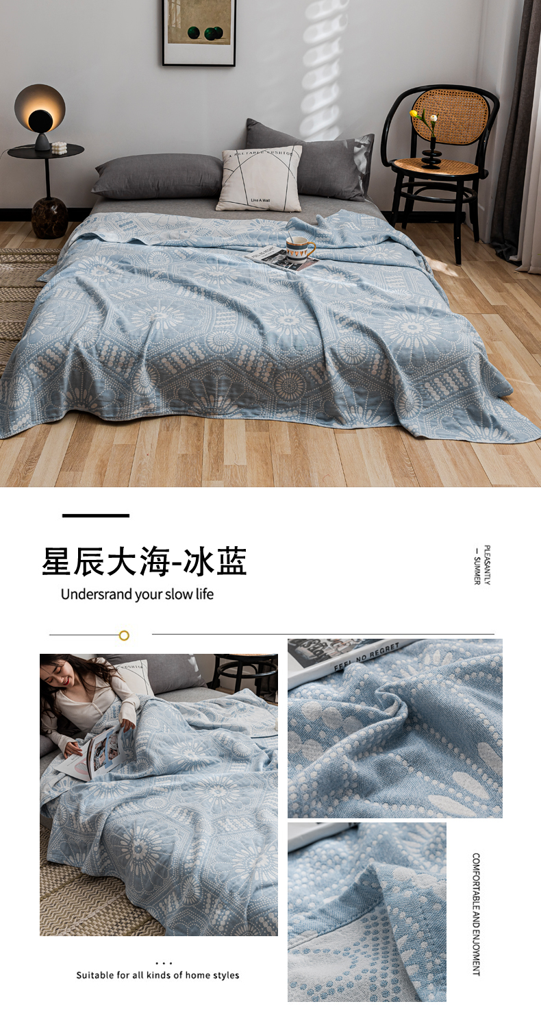 朴尔家纺-毛巾被 2026春夏新款主推三层水洗棉纱布毛巾被夏被夏凉被空调被 冬空-冰蓝
