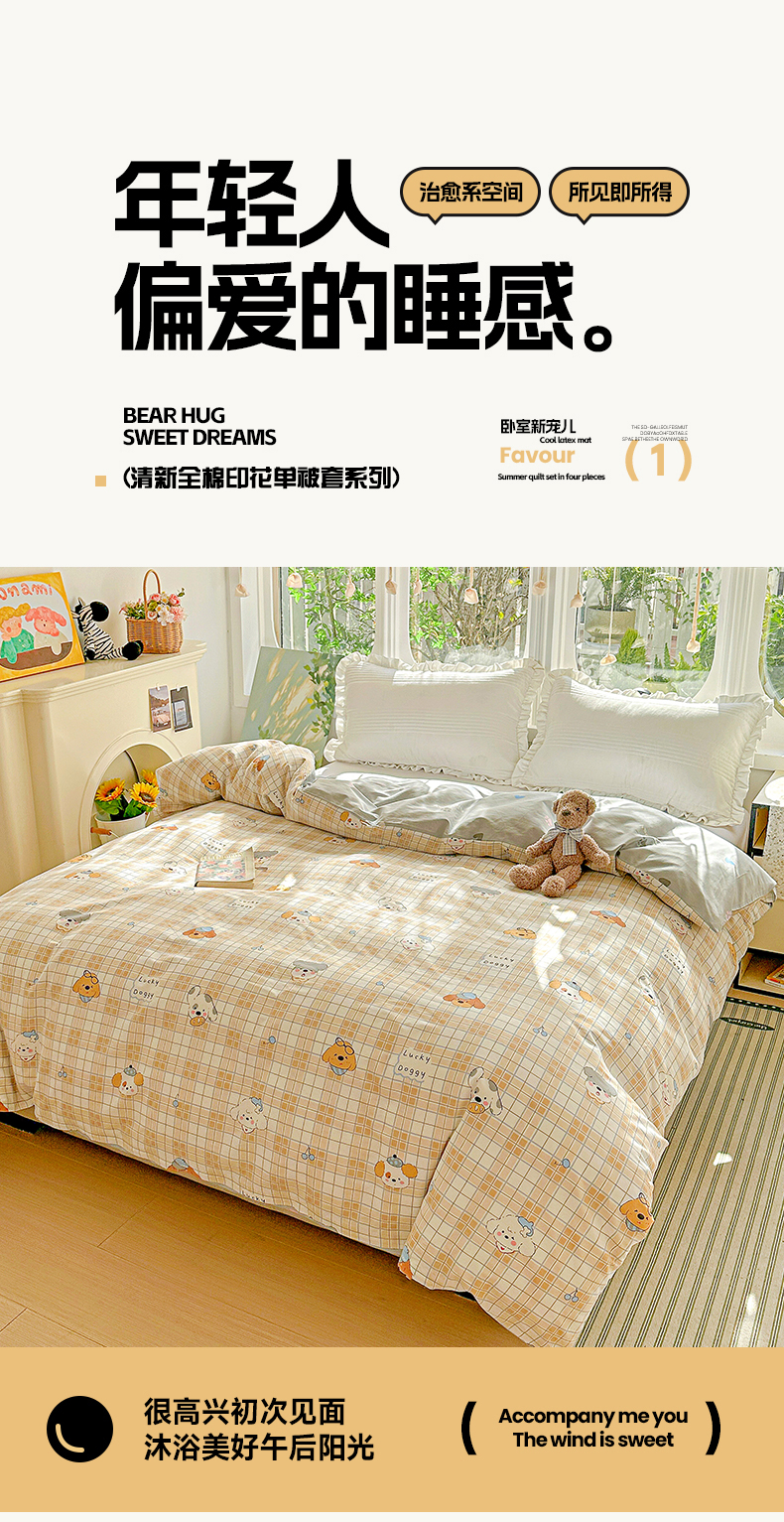 • 91家纺网 家纺一手货源 找家纺 (总)恩泽家纺 2026春夏新款全棉纯棉12868印花四件套(提供买家秀,预留缩水率),花丛小兔子,草莓季,多彩世界,护花使者,花季少女,花梦间,极简主义,凯蒂宝贝,可爱喵,拉菲特,洛琳粉,绿格小熊,帽子小狗,喵喵,魔法帽,奶油阿布,派对小狗,苹果小猫咪,时尚猫咪粉,田园小花,碎花兔兔,甜小桔,甜心汪·咖,甜心汪·蓝,晚樱,小狗乐乐,小精灵,小萌物,小淘气,小甜心,小熊布丁,小熊猫,星动情节,星梦童话,星愿萌犬,熊猫与牛油果,学院风,雪纳瑞,樱桃派,樱桃兔,樱桃小熊,宅宅女孩
