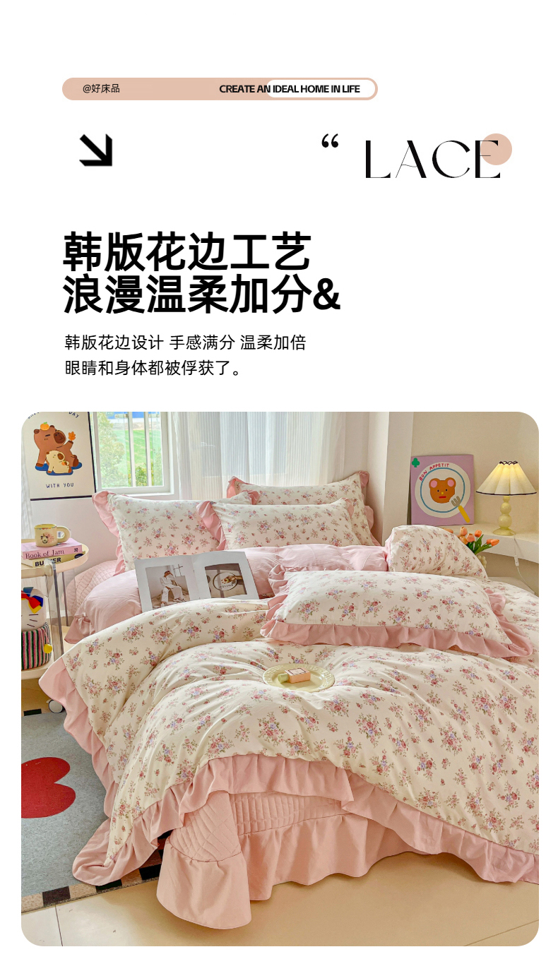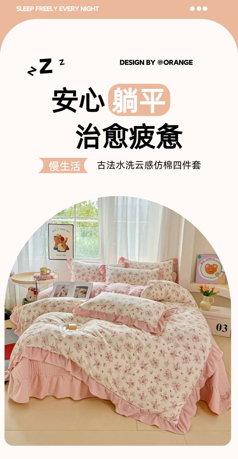 (总)斯卡诺家纺 2026新款韩版花边古法水洗仿棉床盖四件套花边床单四件套,爱心樱桃-韩版花边,红粉佳人-韩版花边,花千朵-韩版花边,灰樱桃-韩版花边,凯蒂猫-韩版花边,满园春色-韩版花边,漫野-韩版花边,觅时光-韩版花边,喵星人-韩版花边,慕兮-韩版花边,南枝-韩版花边,盛夏花开-韩版花边,兔小姐-韩版花边,小苍兰-韩版花边,小夜曲粉-韩版花边,小夜曲紫-韩版花边