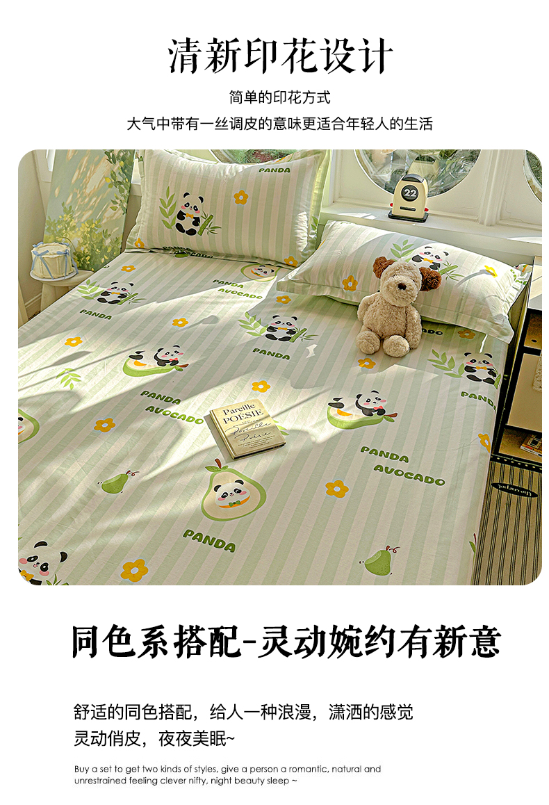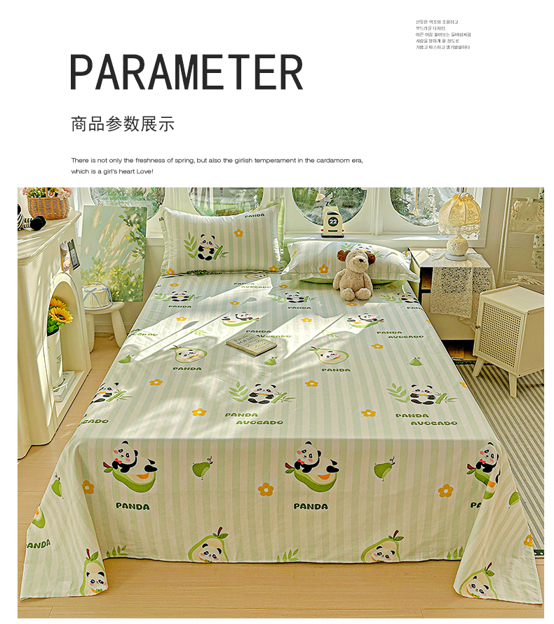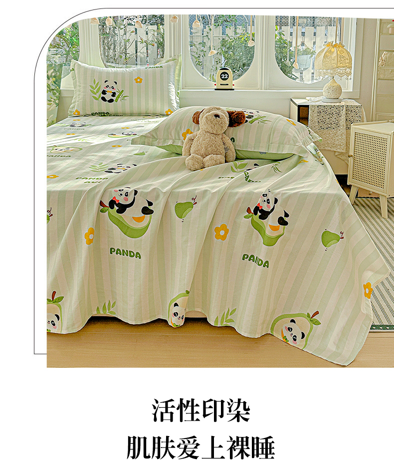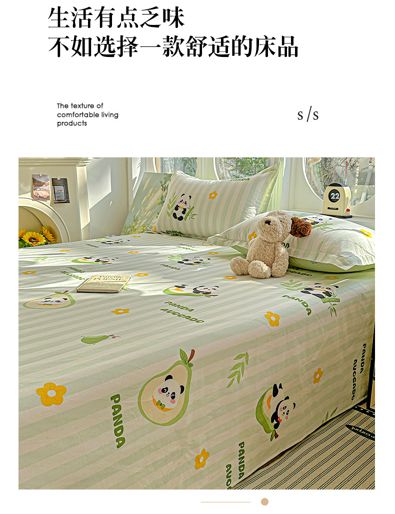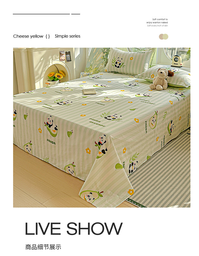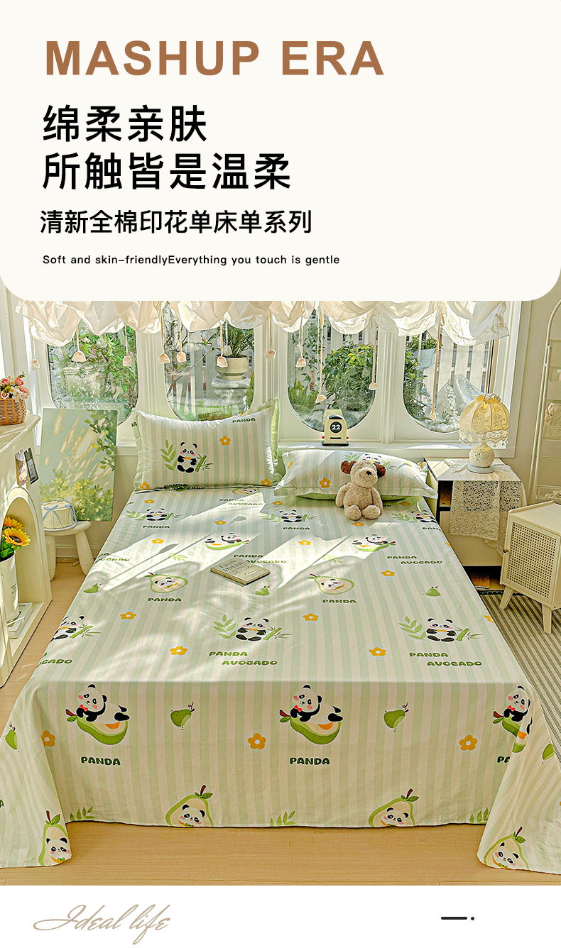 恩泽家纺 2026春夏新款全棉纯棉12868印花四件套及单品系列-单床单床单单件 熊猫与牛油果