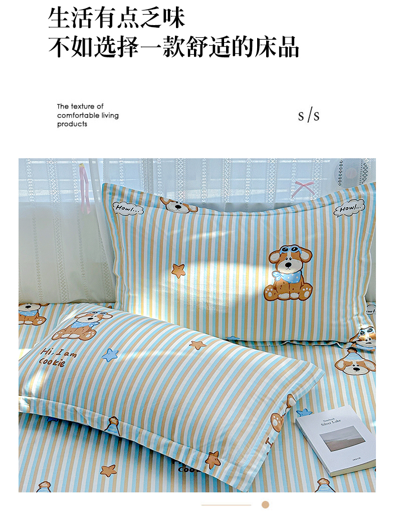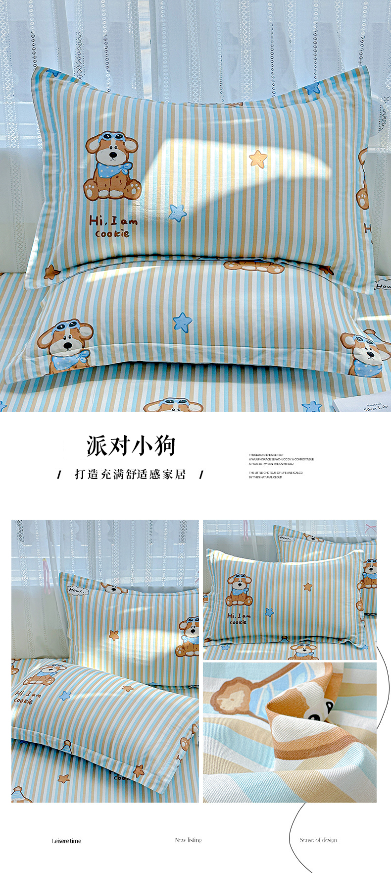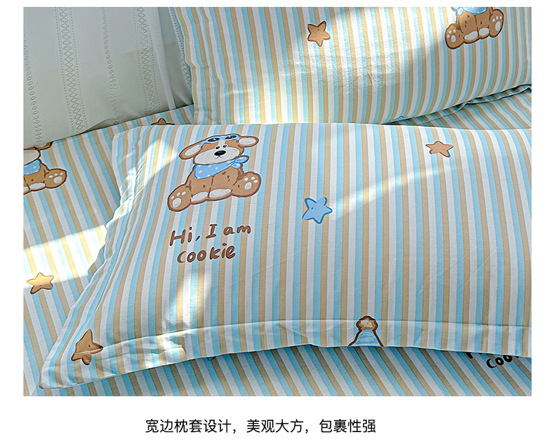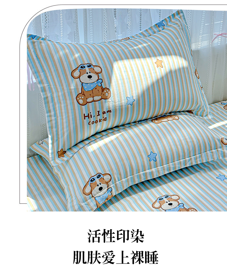 商品名称:恩泽家纺 2026春夏新款全棉纯棉12868印花四件套及单品系列-单枕套枕套单件 派对小狗