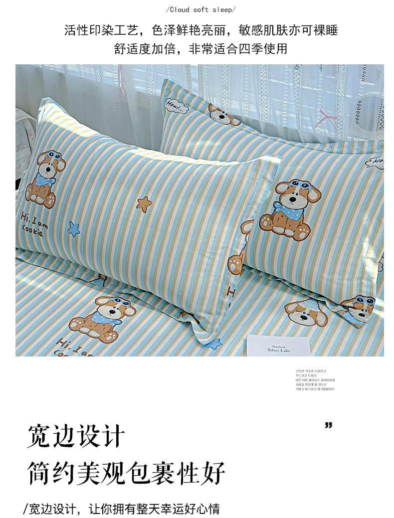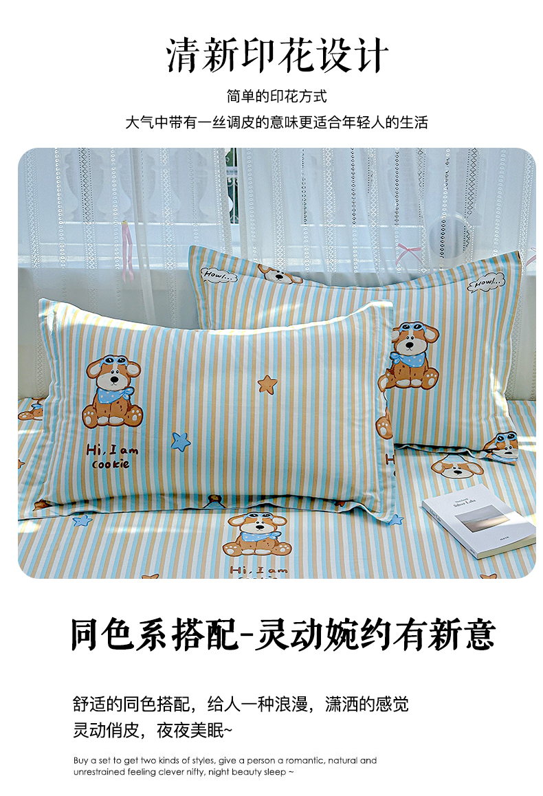 恩泽家纺 2026春夏新款全棉纯棉12868印花四件套及单品系列-单枕套枕套单件 派对小狗