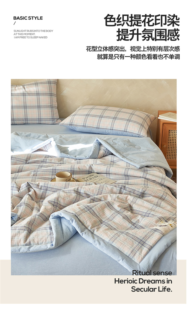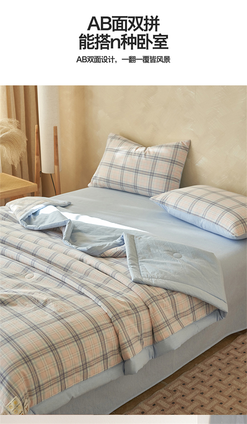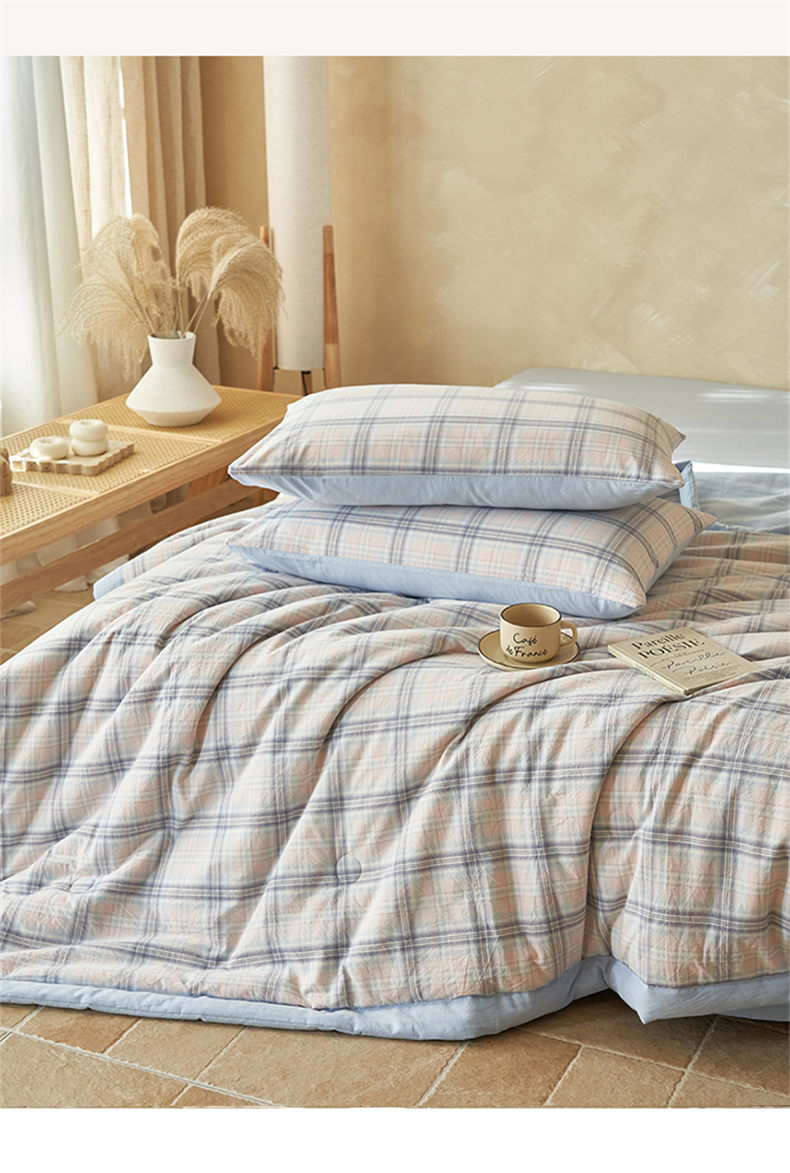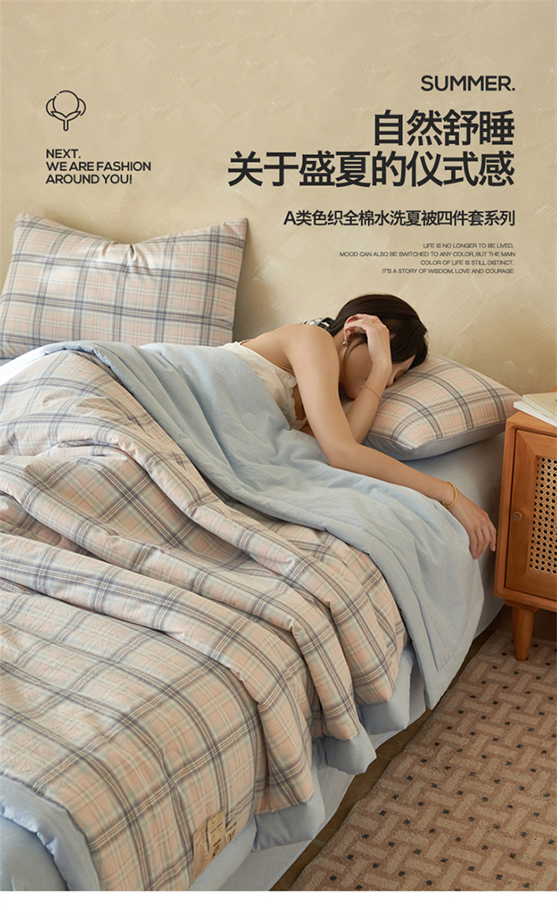 当前位置: 91家纺网 > 商品网购 > 床品套件 > 四件套 > 夏被四件套 > 恒爱家纺 2026新款A类色织全棉水洗夏被四件套 NS春野-粉蓝