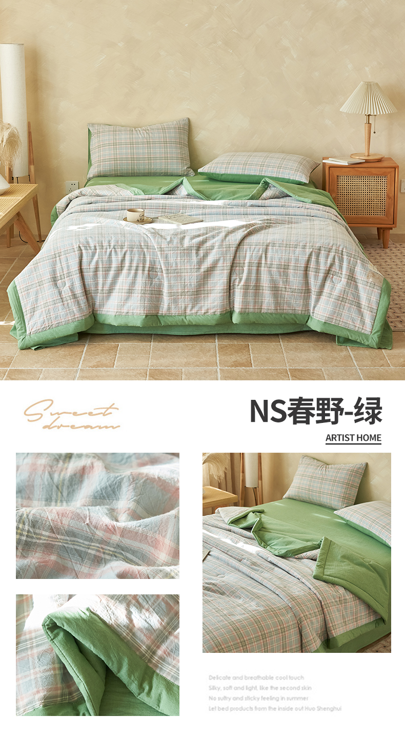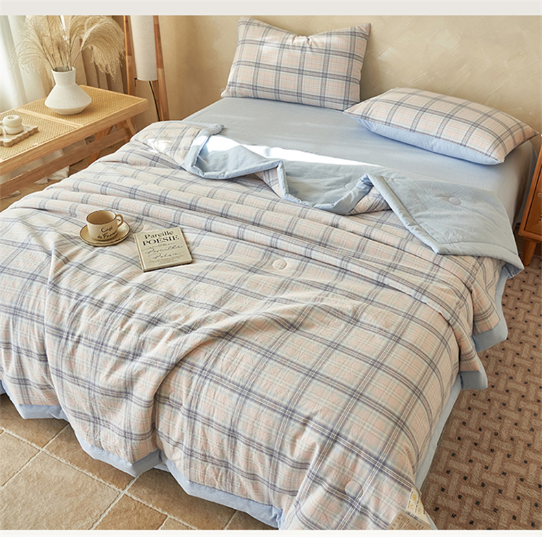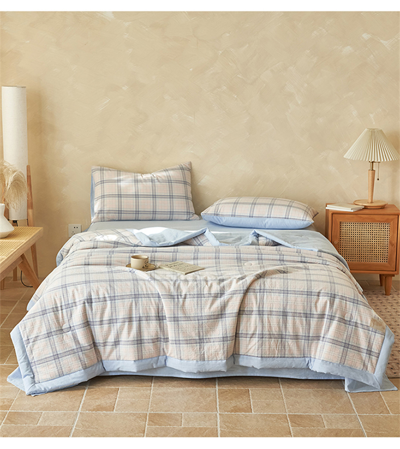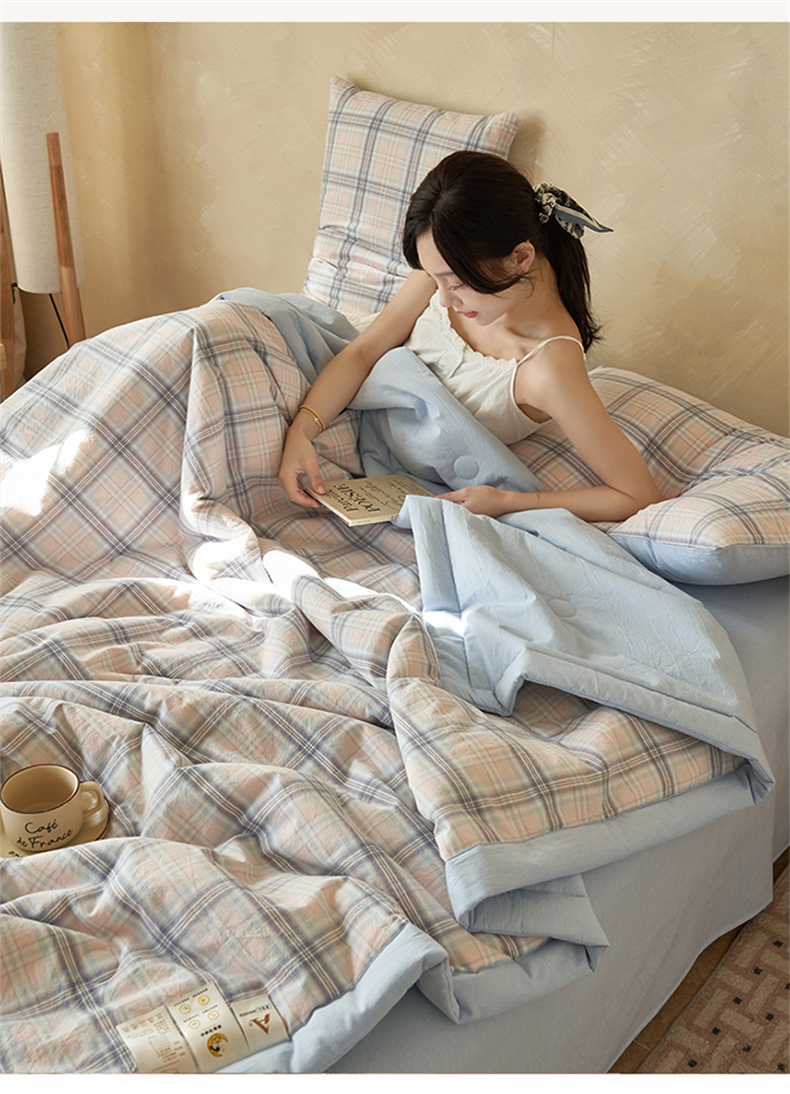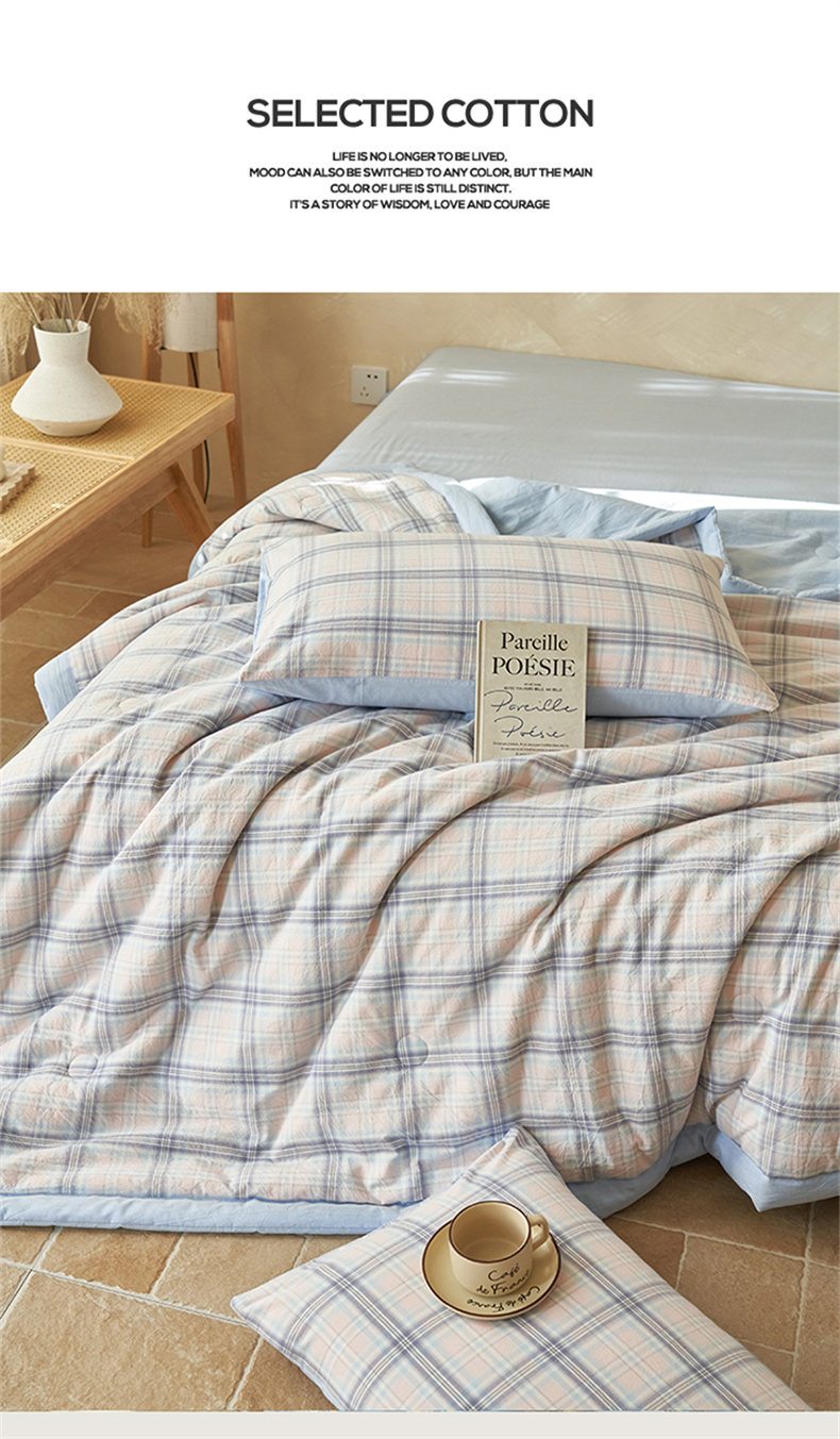 当前位置: 91家纺网 > 商品网购 > 床品套件 > 四件套 > 夏被四件套 > 恒爱家纺 2026新款A类色织全棉水洗夏被四件套 NS春野-粉蓝