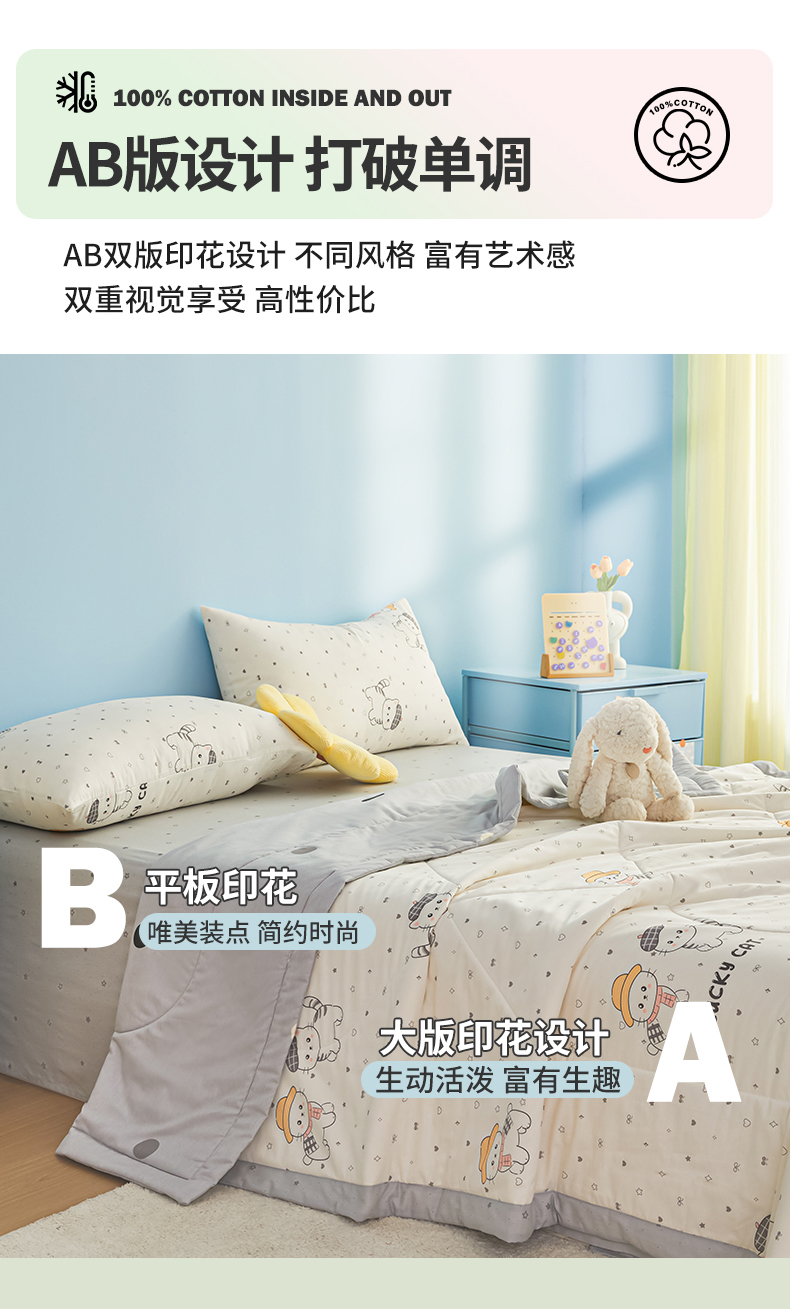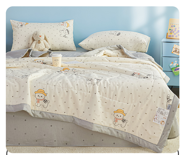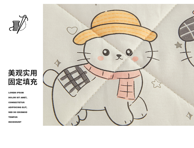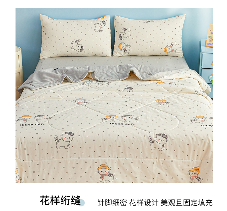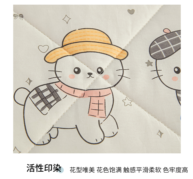 • 91家纺网 家纺一手货源 找家纺 尊妙被业 2026年新款全棉纯棉印花100%棉花夏被四件套被子被芯-卡通风 喜悦小咪