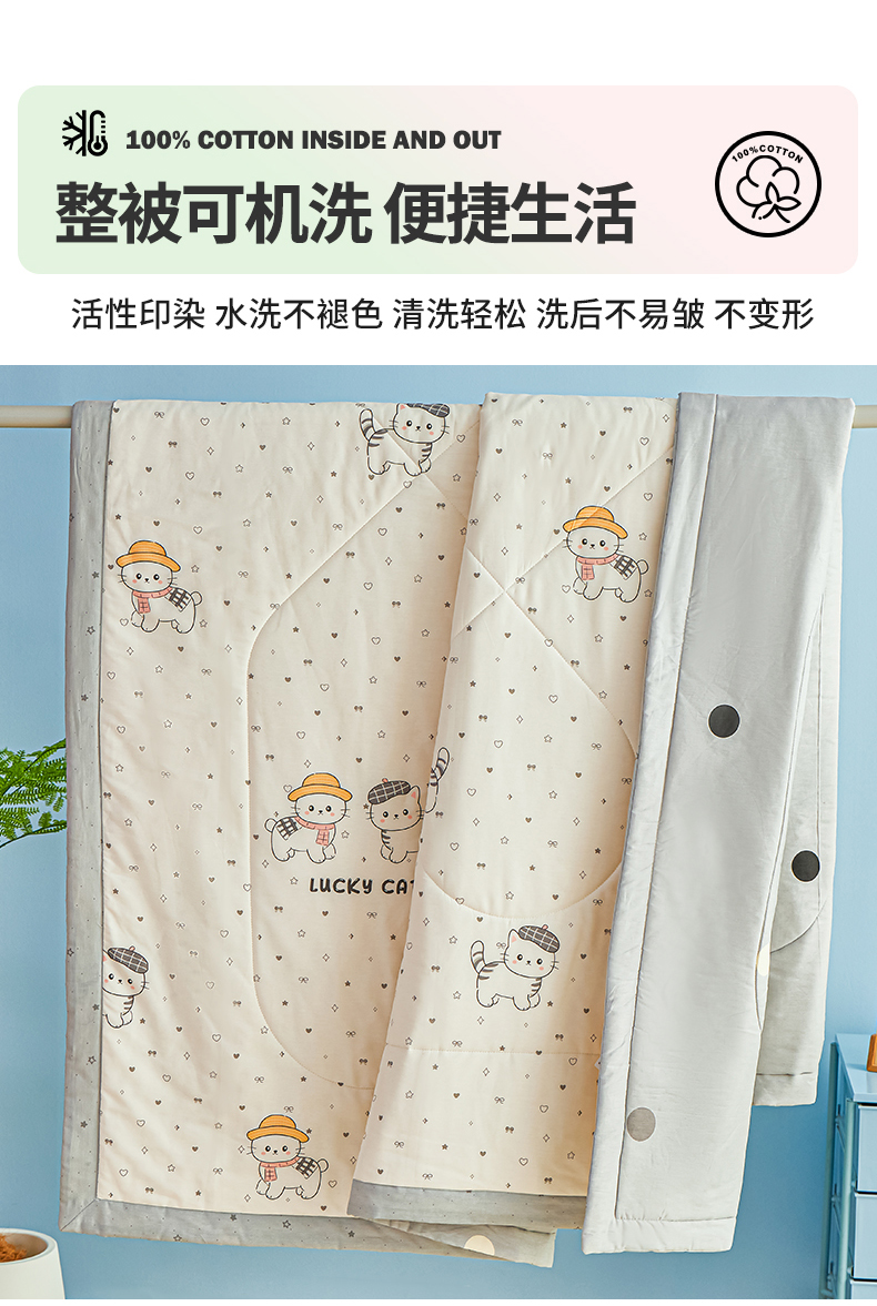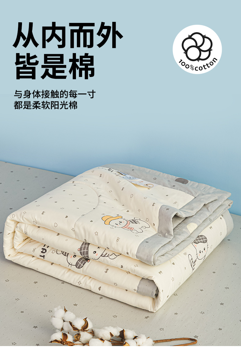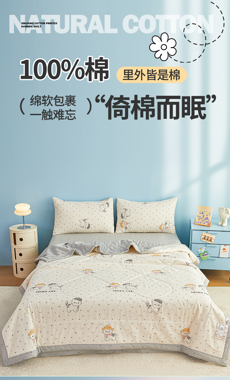 尊妙被业 2026年新款全棉纯棉印花100%棉花夏被四件套被子被芯-卡通风 喜悦小咪