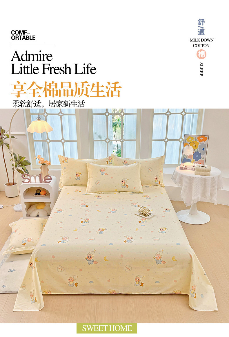 (总)安逸家纺 2026新款12868 全棉纯棉床单四件套学生宿舍纯棉床单款三件套,美伊娜多,豹纹KT粉,草莓派,繁星,风华正茂,格拉花园,桂馥兰香,花田妙语,花园狮子狗,凯蒂宝贝,蓝沫,蓝色星星人,蓝星动物园,蕾拉果园,罗德里,洛克庄园,洛琳粉,梦幻格,米兰印象,青绿银杏,苏糖咖,甜心花朵,微风徐徐,心动旋律,星辰大海,星星独角兽,徐徐花开,雪哈汪,幽兰花梦,釉色浮光