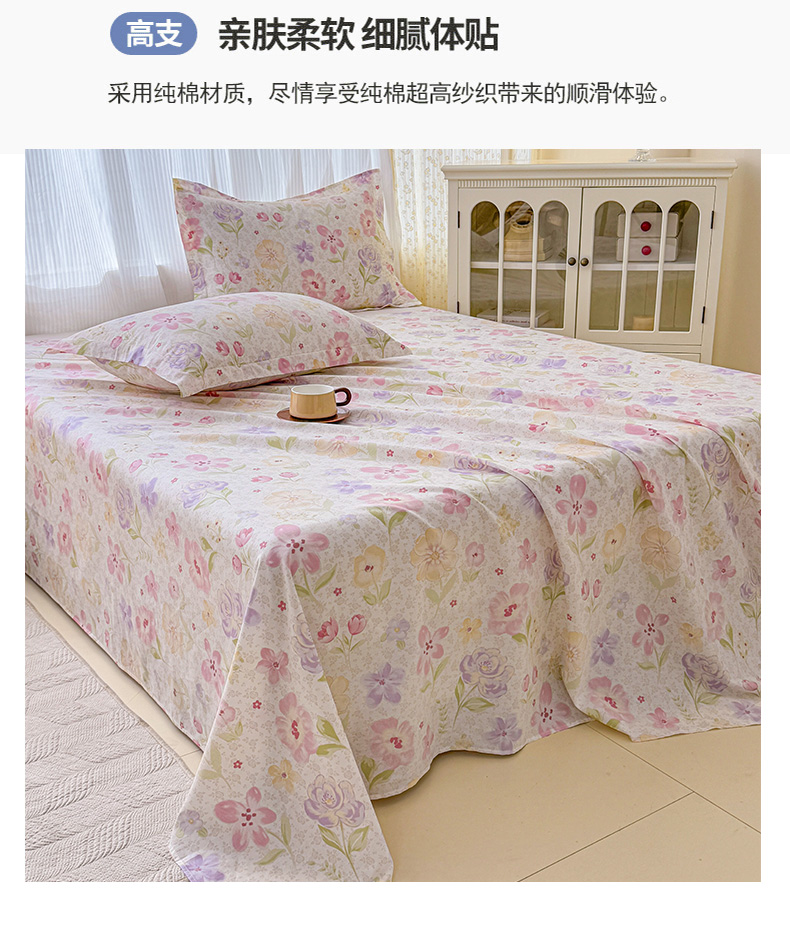 安逸家纺 2026新款全棉纯棉印花12868系列-床单单件单床单 甜心花朵