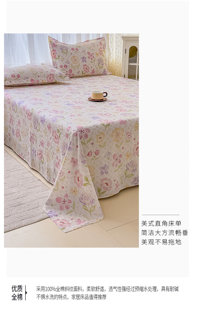 • 91家纺网 家纺一手货源 找家纺 安逸家纺 2026新款全棉纯棉印花12868系列-床单单件单床单 甜心花朵