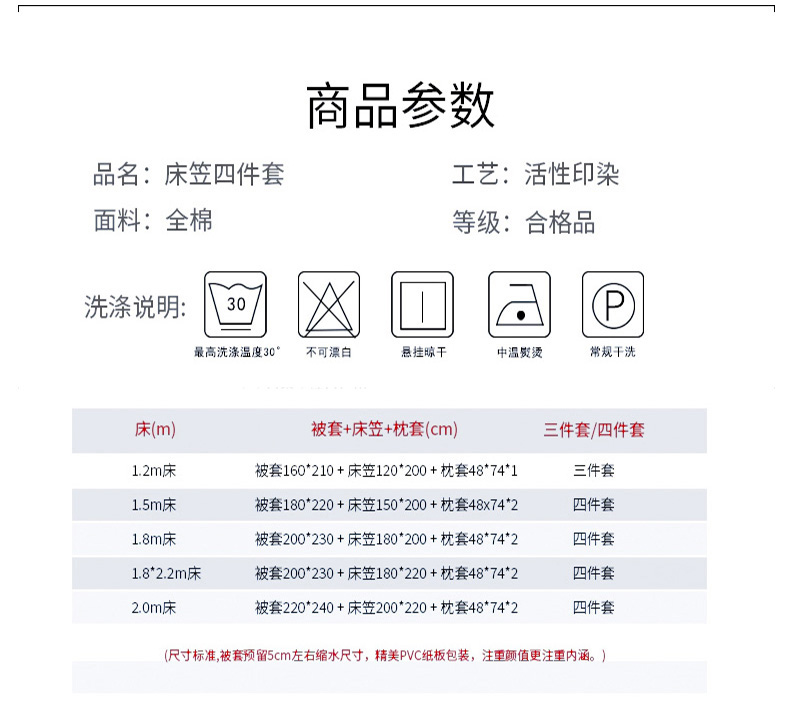 【床笠款】1.8x2.2四件套-被套200x230 | ¥96.00 |