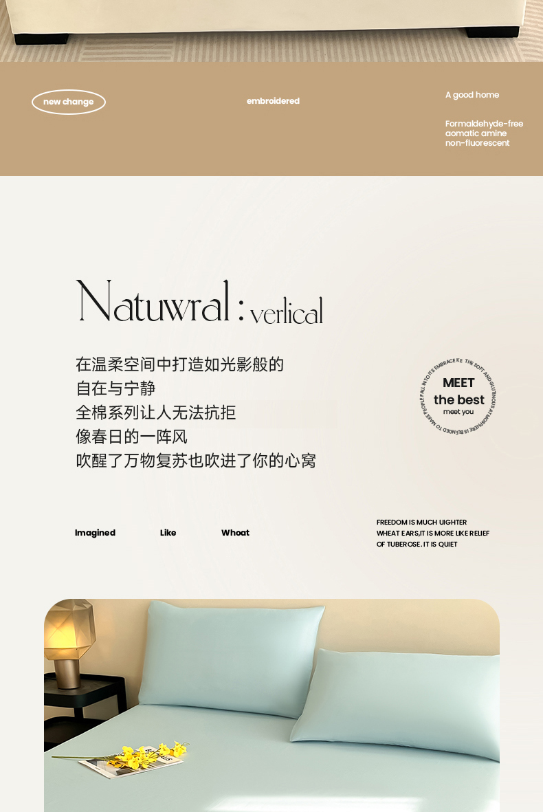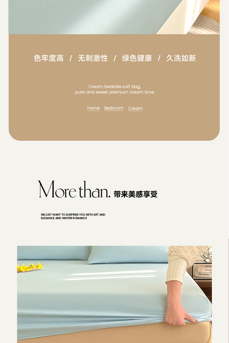 • 91家纺网 家纺一手货源 找家纺 (总)润肤居 2026新款A类全棉13372单床笠,茶绿,粉白,粉瓷,摩卡,晴蓝,杏仁