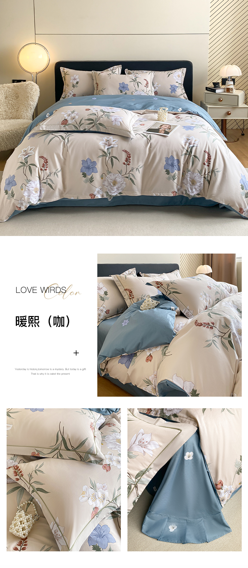 当前位置: 91家纺网 > 商品网购 > 床品套件 > 四件套 > 全棉普通四件套 > 格里芬家纺 2026新款全棉纯棉40S精梳棉13376印花四件套 浅花悠悠