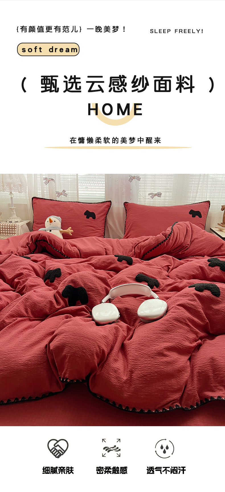 当前位置: 91家纺网 > 商品网购 > 床品套件 > 四件套 > 其它四件套 > 富米莱(原臻工厂) 2026新款奶呼呼云感纱贝壳边毛巾绣四件套-小飞马 小飞马一红黑
