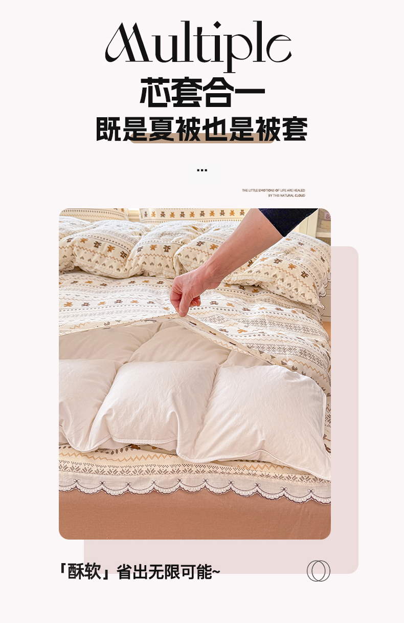 (总)被窝家纺 2026新款全棉纯棉有氧双层纱多功能夏被夏凉被空调被四件套,车厘子,费尔岛小熊,蓝风铃,蓝色泡泡,绿玫瑰,萌星,柠檬花,泡芙狗,清桃-粉,小野花,樱桃甜心,紫罗兰