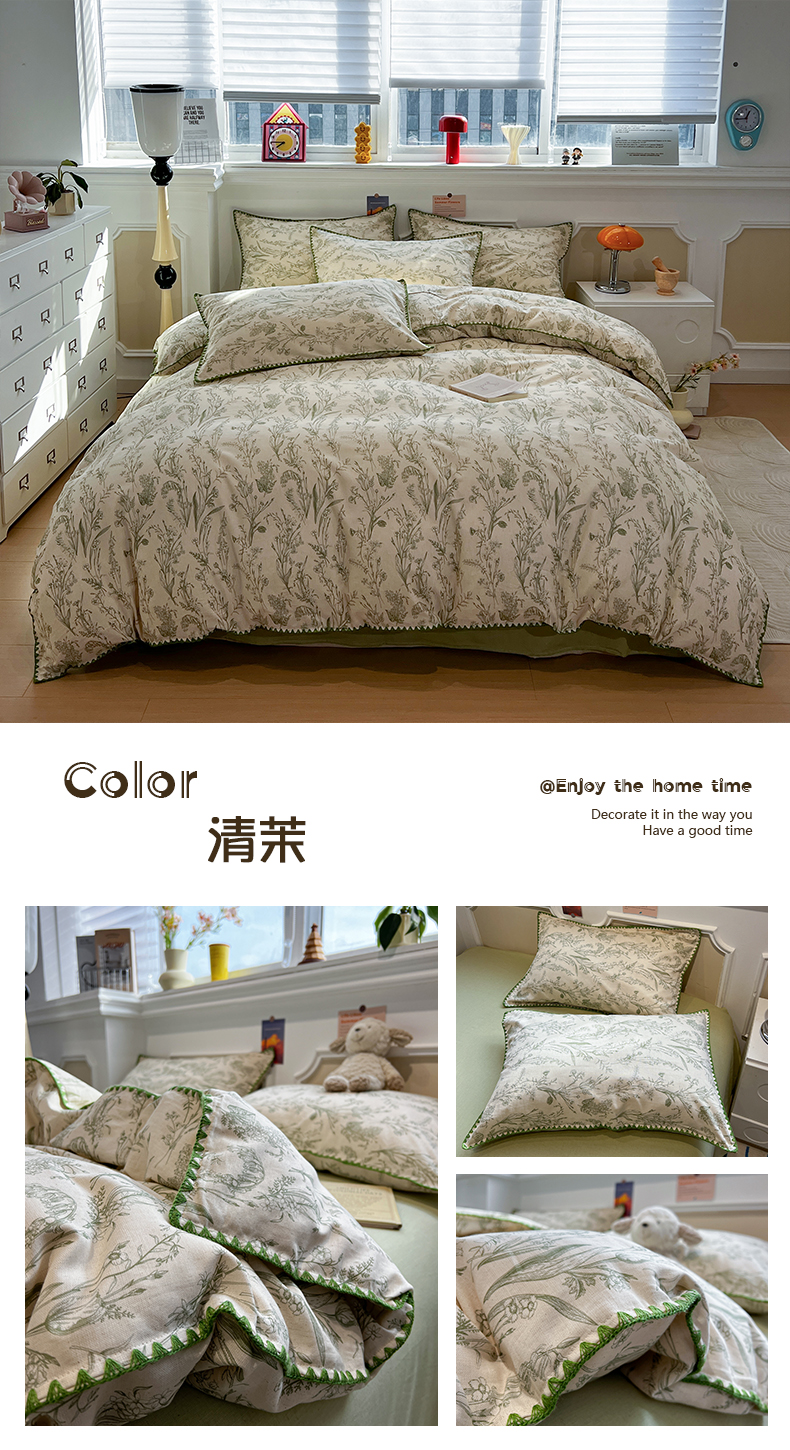 当前位置: 91家纺网 > 商品网购 > 床品套件 > 四件套 > 其它四件套 > 忆生活家纺 2026新款棉麻小清新三角针贝壳边四件套 桃白