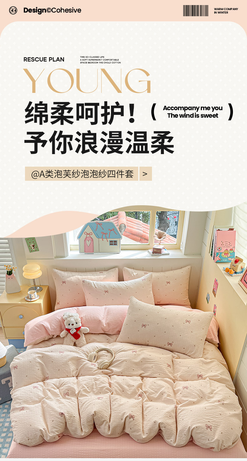 当前位置: 91家纺网 > 商品网购 > 床品套件 > 四件套 > 其它四件套 > 金梦拉家纺 2026新款A类高品质高克重超柔泡芙纱泡泡纱小清新四件套 可爱小喵