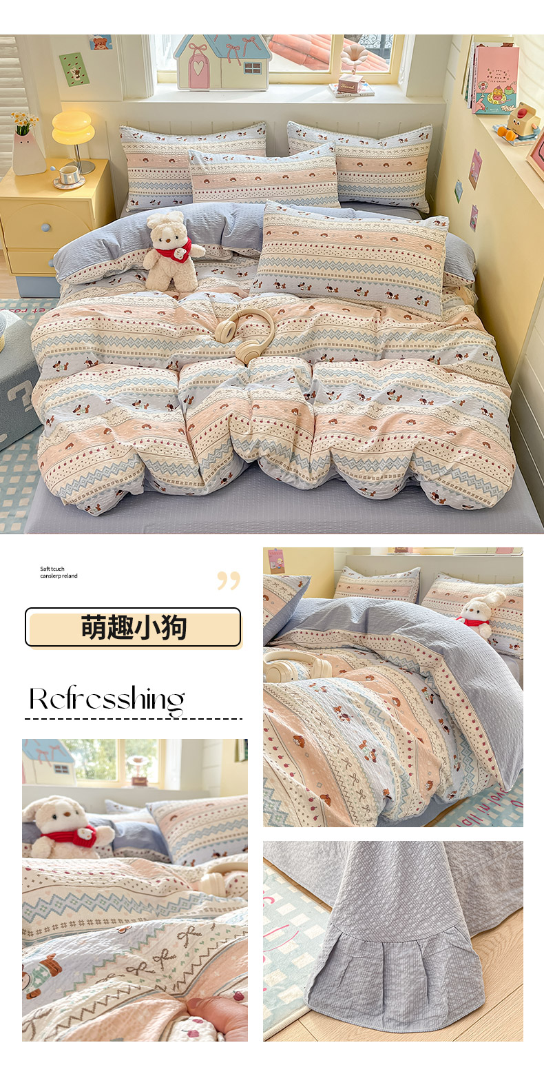 当前位置: 91家纺网 > 商品网购 > 床品套件 > 四件套 > 其它四件套 > 金梦拉家纺 2026新款A类高品质高克重超柔泡芙纱泡泡纱小清新四件套 线条汪