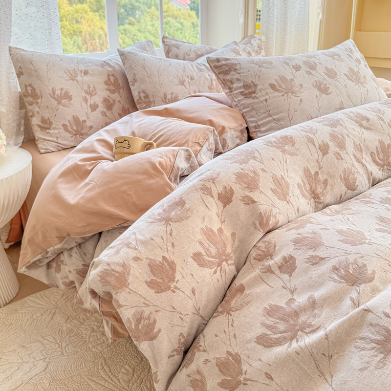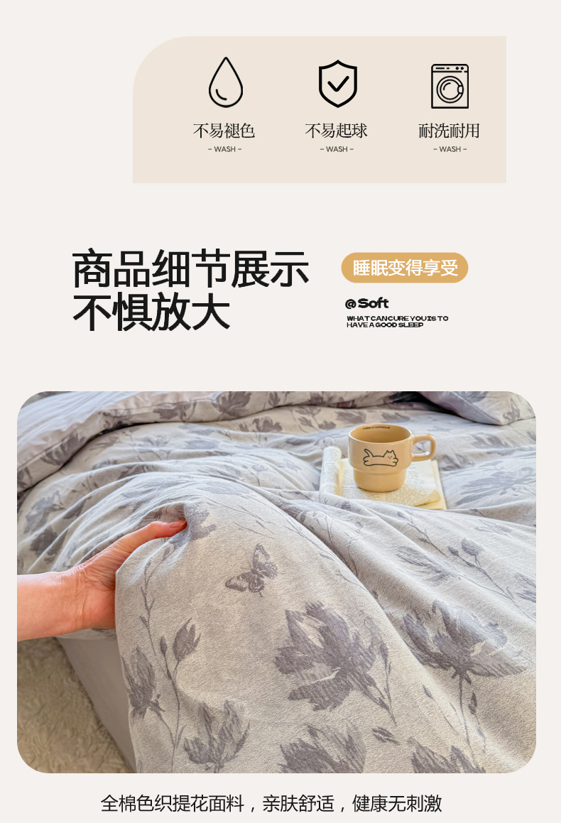 当前位置: 91家纺网 > 商品网购 > 床品套件 > 四件套 > 全棉普通四件套 > 苏东来家纺 2026新款A类60支全棉长绒棉纯棉色织提花四件套水洗纯棉厚织提花肌理被套四件套 云裳粉