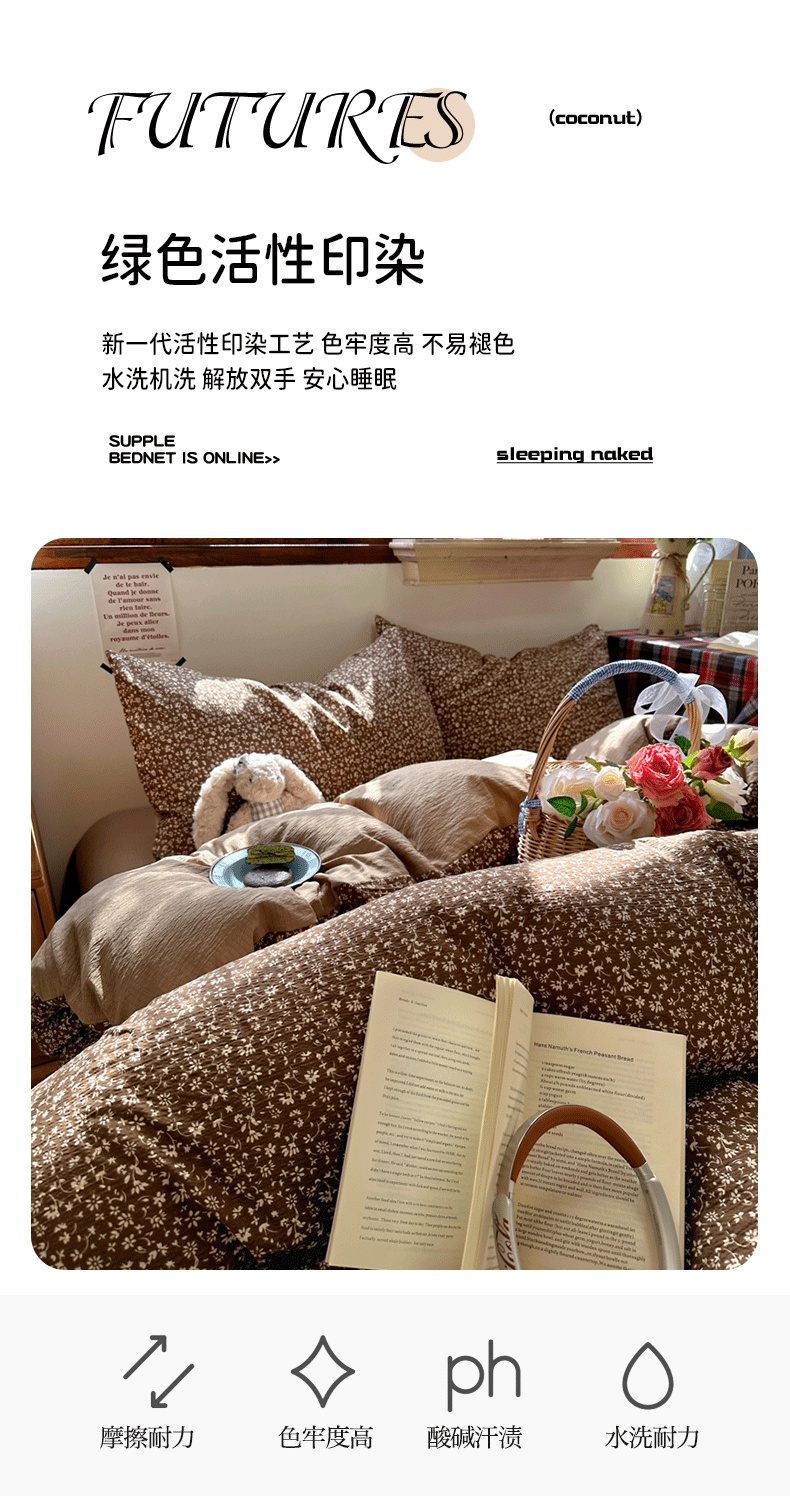 当前位置: 91家纺网 > 商品网购 > 床品套件 > 四件套 > 化纤活性四件套 > 阿曼达 2026新款日韩系复古印花小碎花软糯贴肤慵懒伴眠超治愈的床单床笠款四件套 小印-林间序.咖【专版花型】