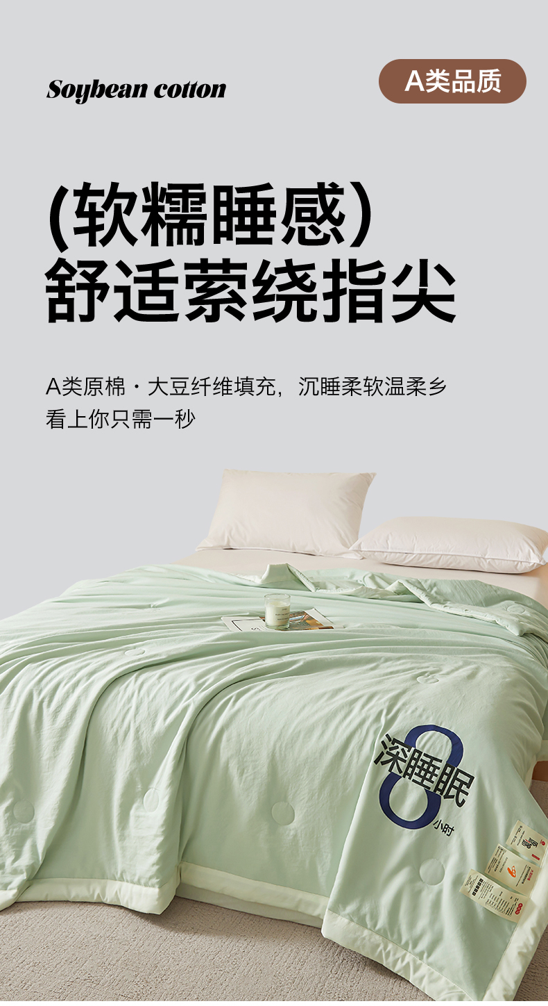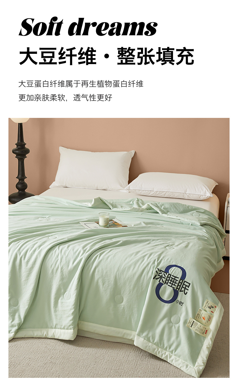 被子 > 夏被 > 招财星 2026新款国标A类8小时睡眠大豆纤维手包边夏凉被夏被空调被子被芯【含质检报告买家秀】 深睡眠-草绿