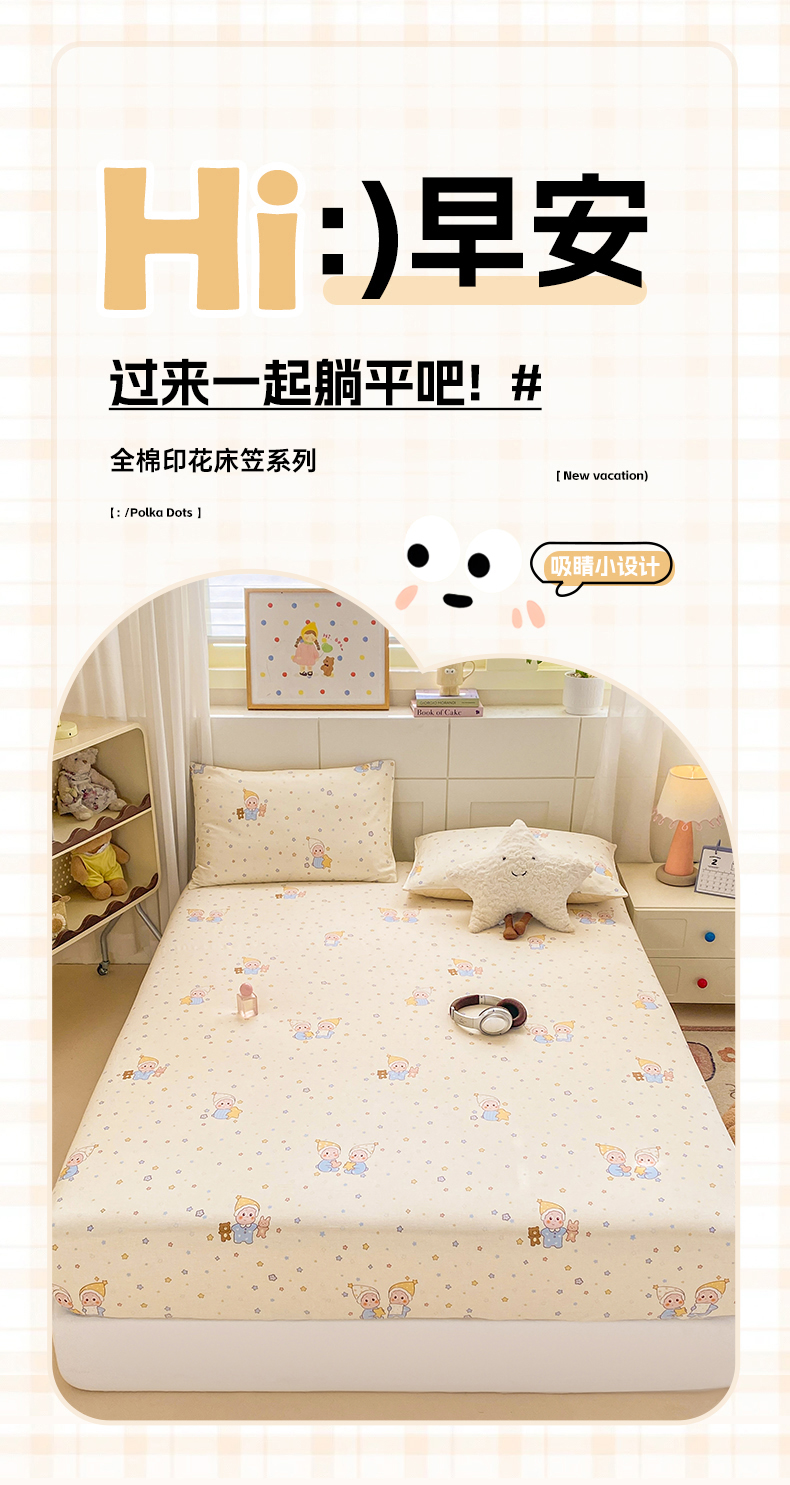 博雅 2026新款全棉纯棉小卡通印花单床笠床笠单件 小版-可爱玩伴星星人