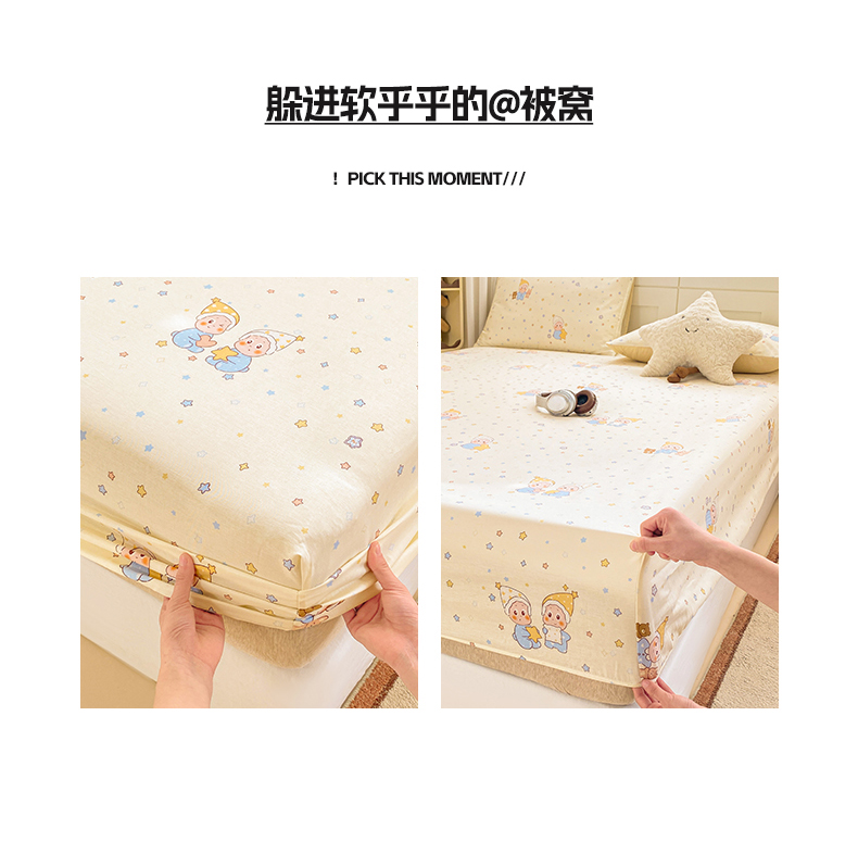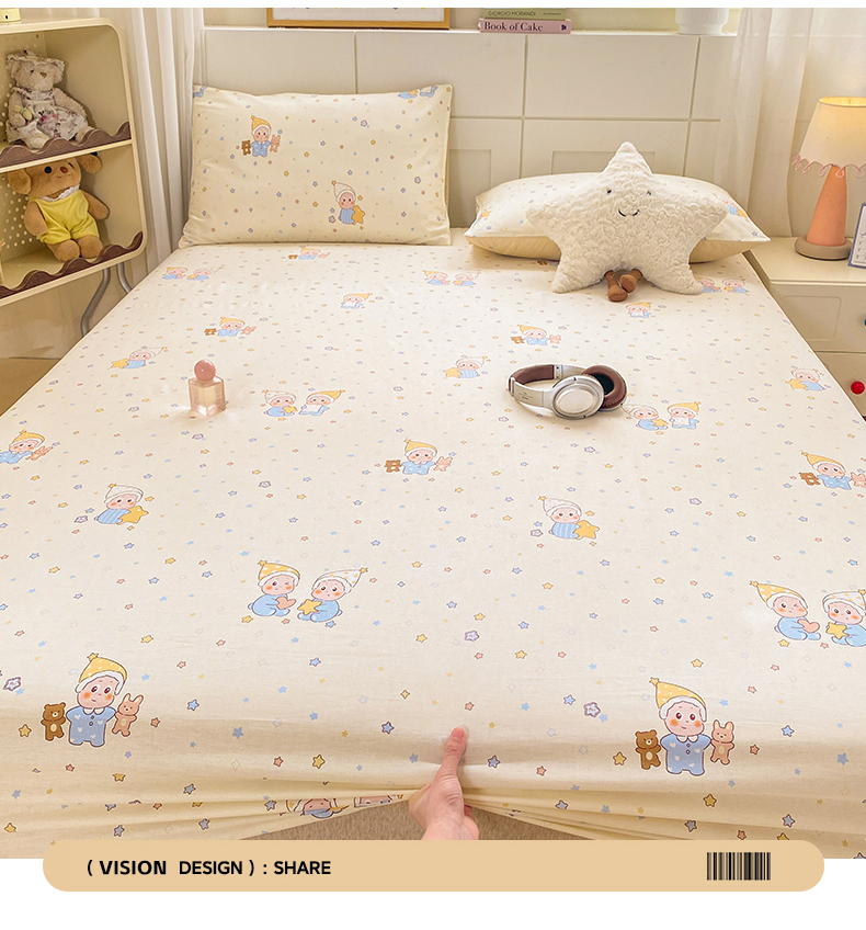 • 91家纺网 家纺一手货源 找家纺 博雅 2026新款全棉纯棉小卡通印花单床笠床笠单件 小版-可爱玩伴星星人