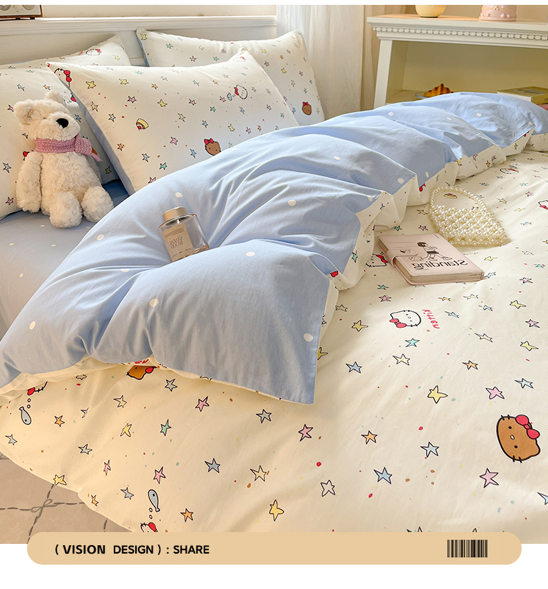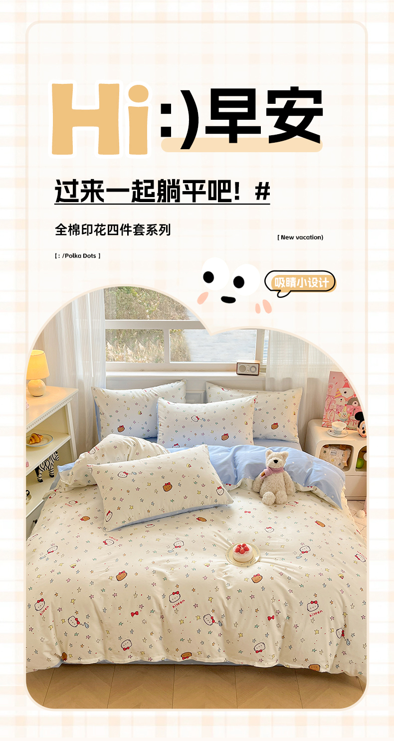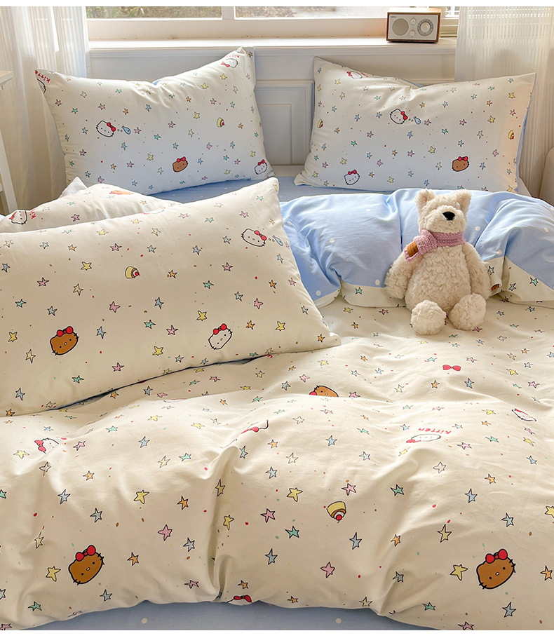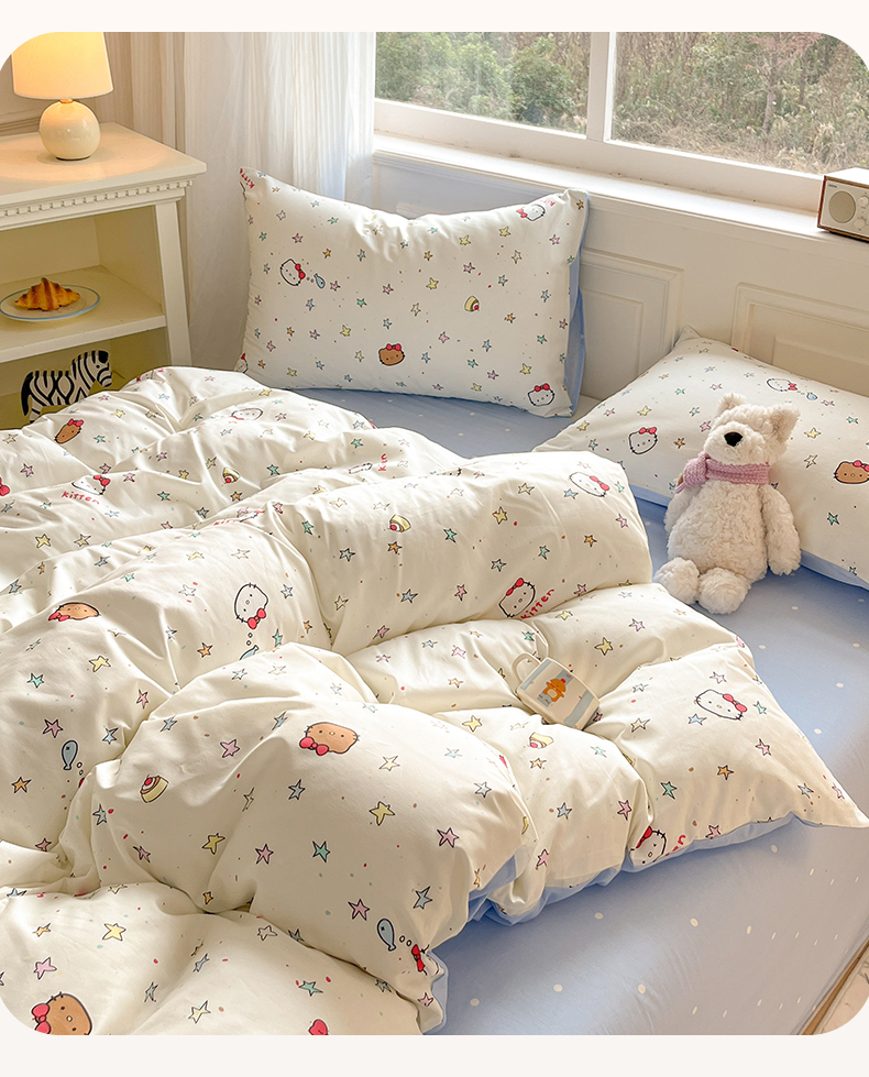 当前位置: 91家纺网 > 商品网购 > 床品套件 > 四件套 > 全棉普通四件套 > 博雅 2026新款全棉纯棉小卡通印花四件套 星星蝴蝶结猫