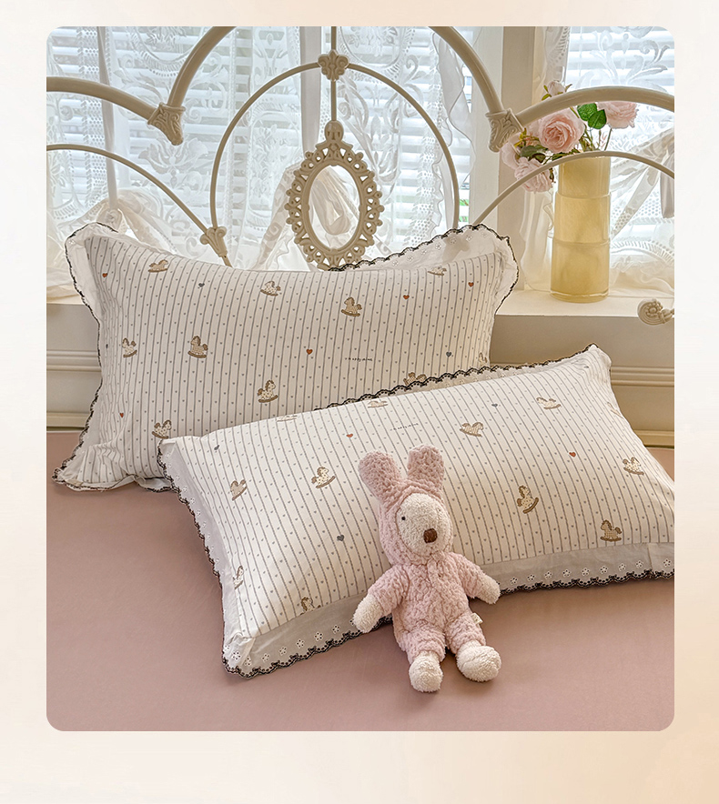 沐珩家纺 2026新款古法水洗仿棉云感棉印花单枕套 古法-木马乐园