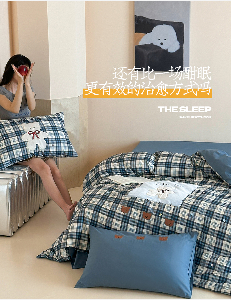 (总)桃子家居 2026新款A类纯棉色织水洗棉韩系奶油撞色格子三角针贝壳边工艺四件套系列,棉三角针-薄荷桃桃,棉三角针-海盐橘子,棉三角针-蓝雾桃格,棉三角针-蜜桃奶酥,棉三角针-奶黄青提,棉三角针-青柠薄荷,棉三角针-甜莓冰萃,棉三角针-紫雾芋泥