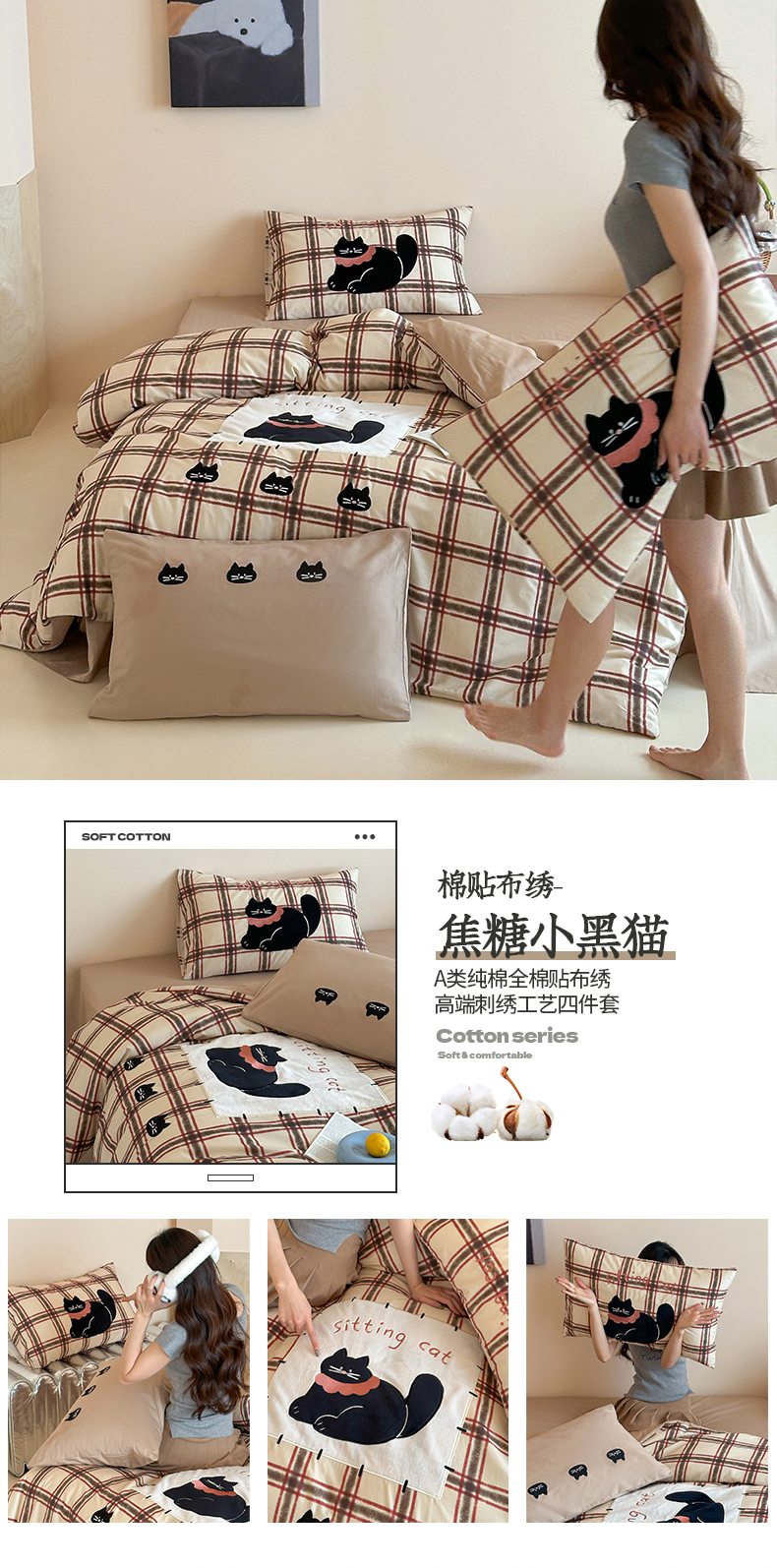 (总)桃子家居 2026新款A类纯棉全棉元气小马贴布绣高端刺绣工艺四件套系列,棉贴布绣-发发马,棉贴布绣-焦糖小黑猫,棉贴布绣-蓝格小熊,棉贴布绣-马上有钱,棉贴布绣-奶油波点马,棉贴布绣-元气小马红,棉贴布绣-元气小马棕