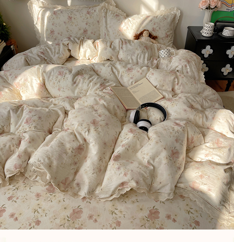 当前位置: 91家纺网 > 商品网购 > 床品套件 > 四件套 > 其它四件套 > 悦织湾家纺 2026新款镂空花边碎花款四件套印花学生宿舍床上用品三4件套单品被套枕套 沐春