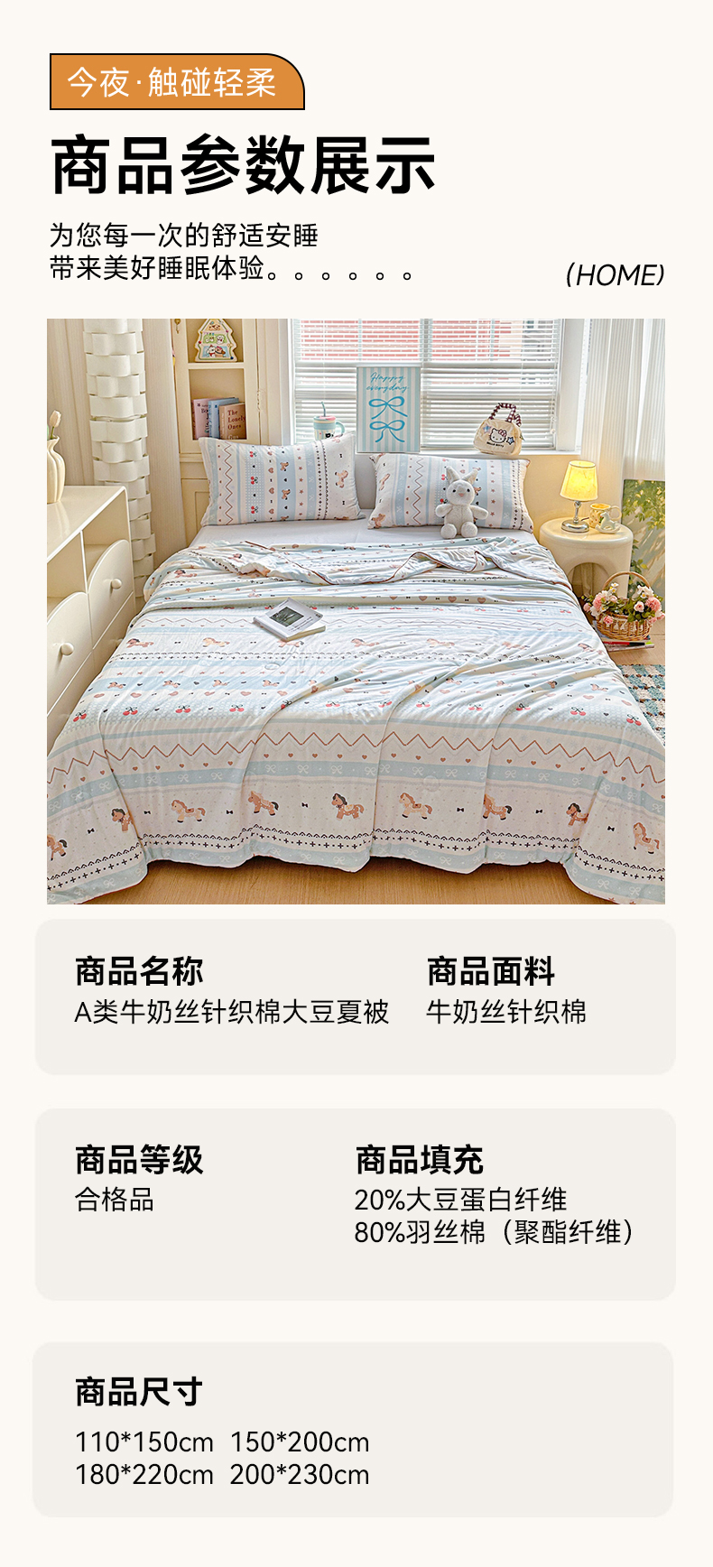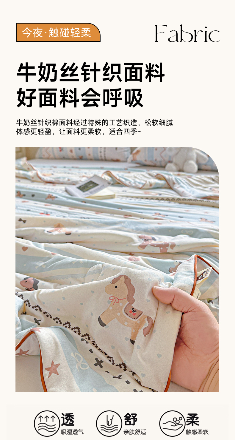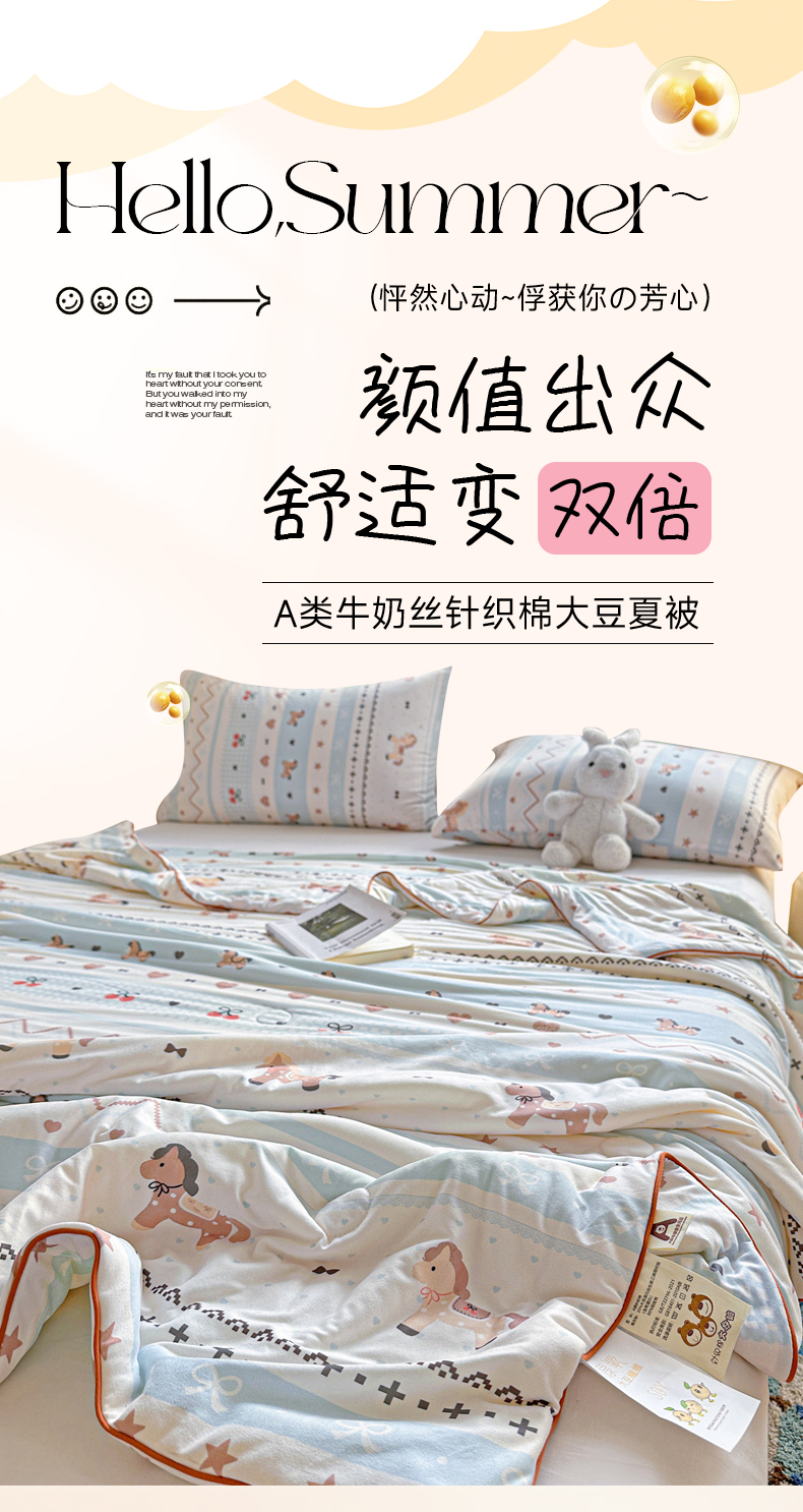 商品名称:优被业 2026新款A类牛奶丝针织棉软糯凉感大豆夏被空调被夏凉被(20%大豆国标包检测) 幸运小马