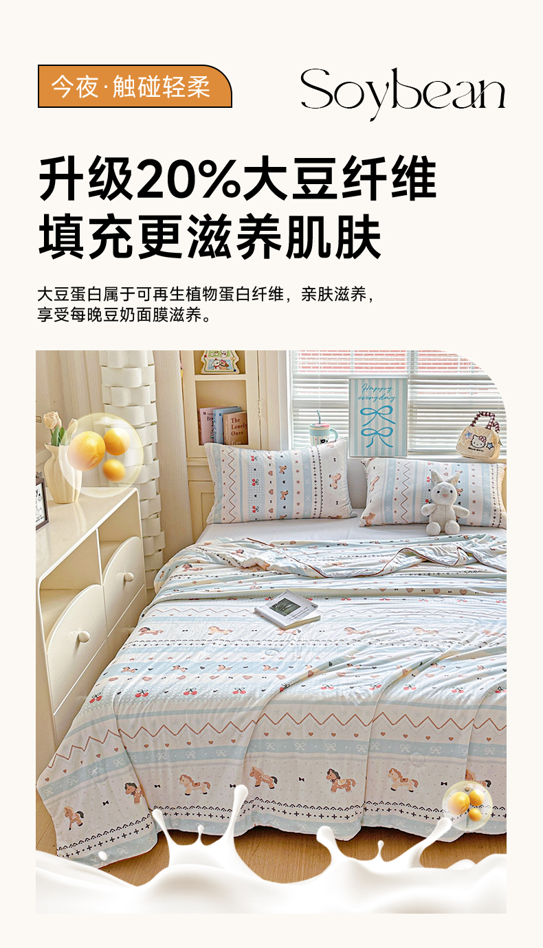 被子 > 夏被 > 优被业 2026新款A类牛奶丝针织棉软糯凉感大豆夏被空调被夏凉被(20%大豆国标包检测) 幸运小马