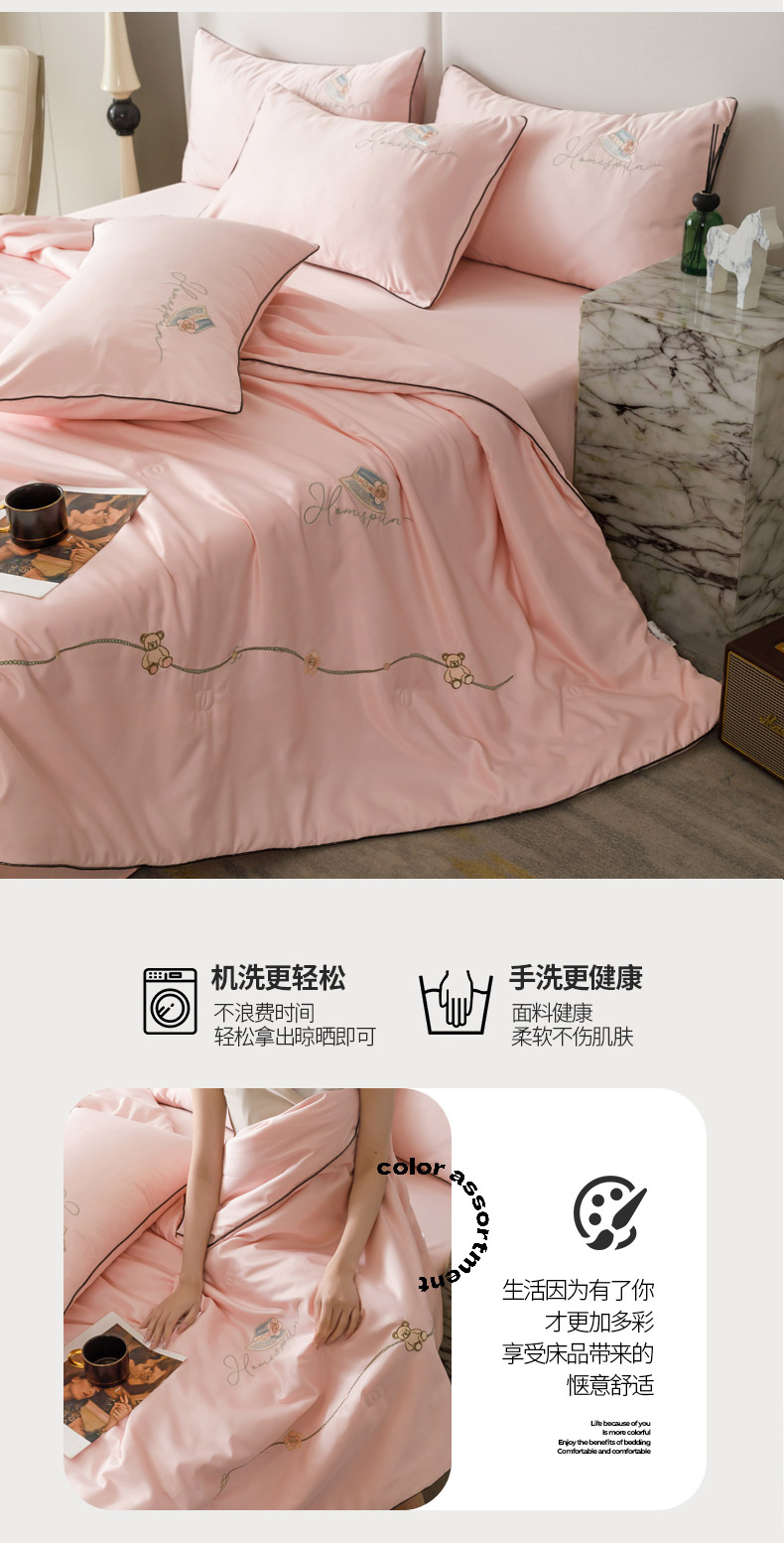 • 91家纺网 家纺一手货源 找家纺 绒世界 2026新款刺绣水洗真丝夏被四件套公主日记系列-风格一 公主日记-樱花粉