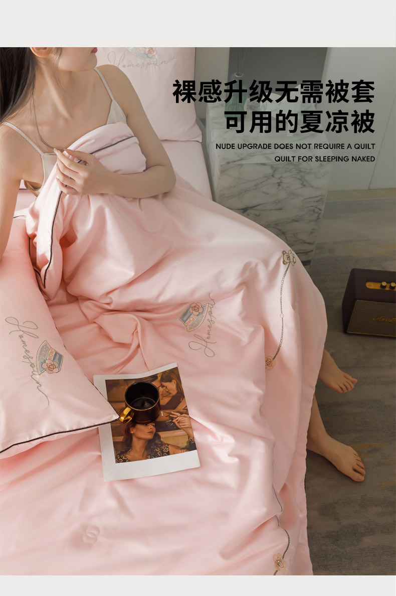 绒世界 2026新款刺绣水洗真丝夏被四件套公主日记系列-风格一 公主日记-樱花粉