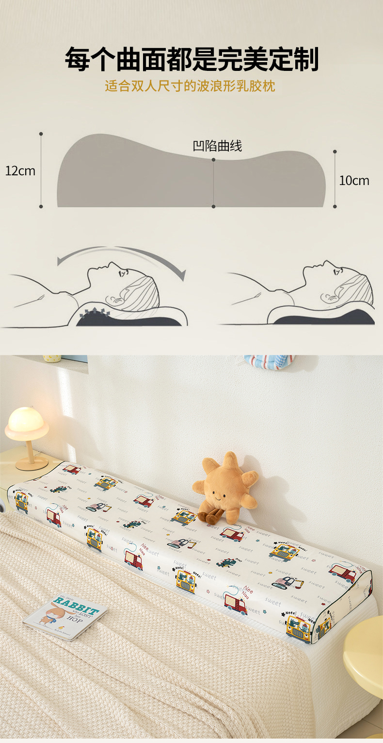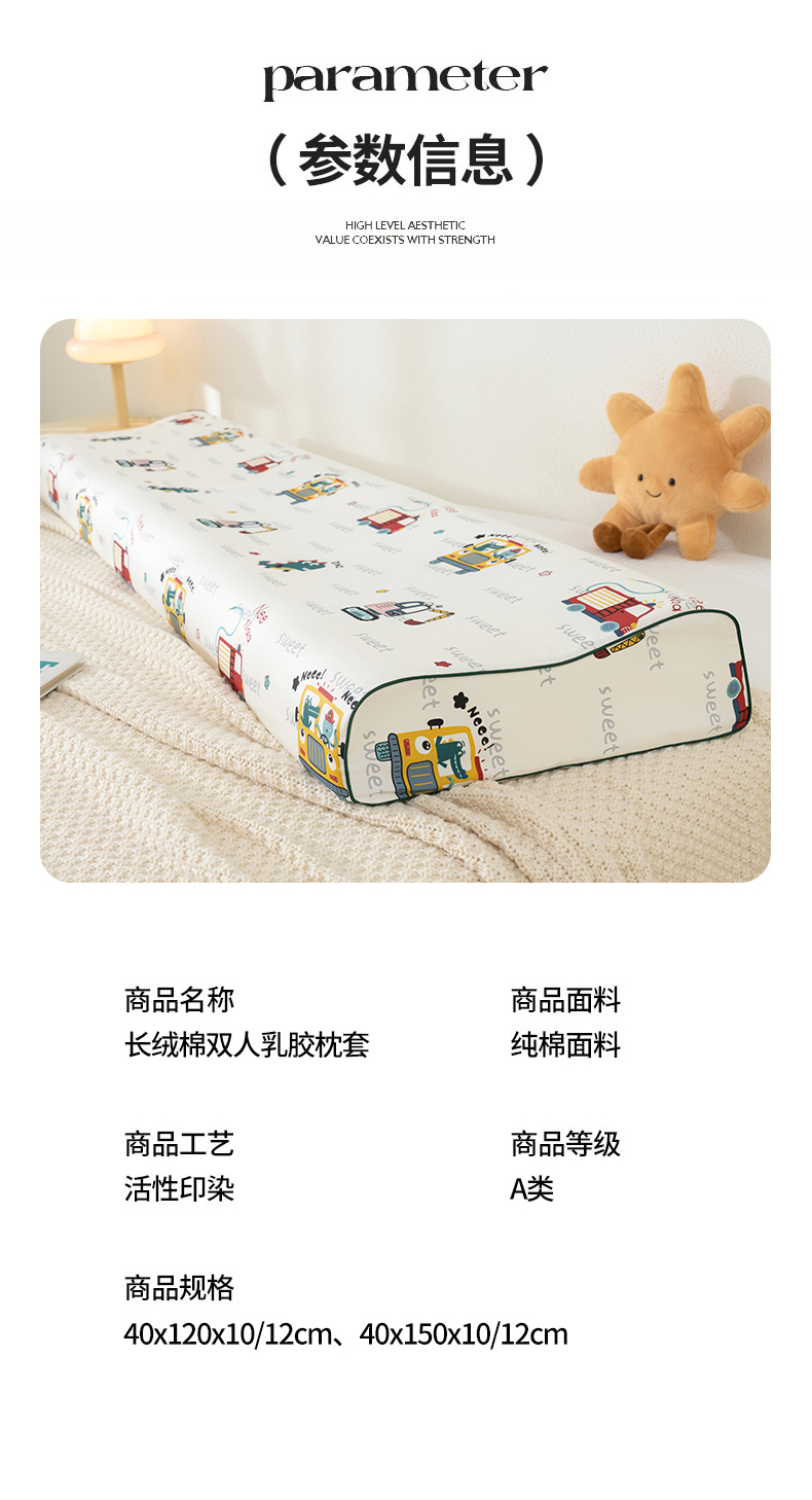 商品名称:良佐生活 2026新款60支长绒棉全棉贡缎双人乳胶枕套 恐龙滴滴车
