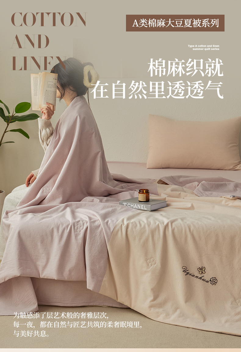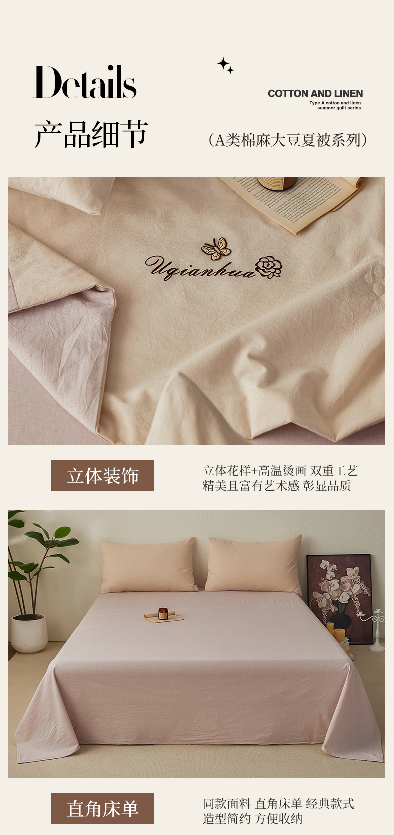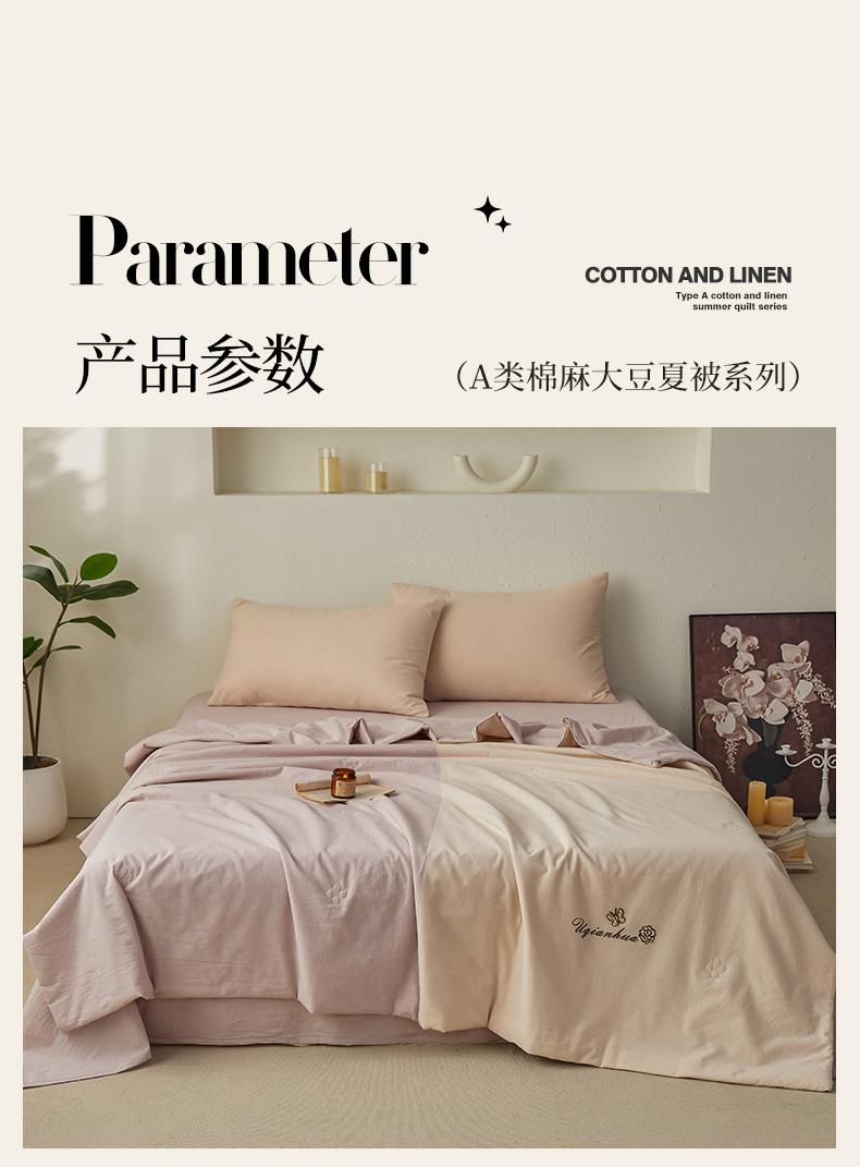 (总)尊妙被业 2026新款A类棉麻亚麻夏被大豆夏被四件套,棉麻 粉,棉麻 粉拼米白,棉麻 蓝,棉麻 蓝拼米白,棉麻 绿,棉麻 绿拼米白,棉麻 浅紫,棉麻 浅紫拼米白,棉麻 深灰,棉麻 深灰拼米白,棉麻 棕,棉麻 棕拼米白