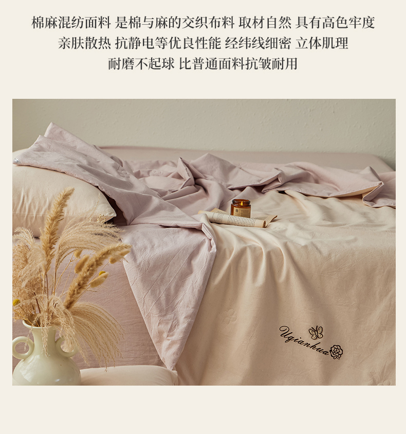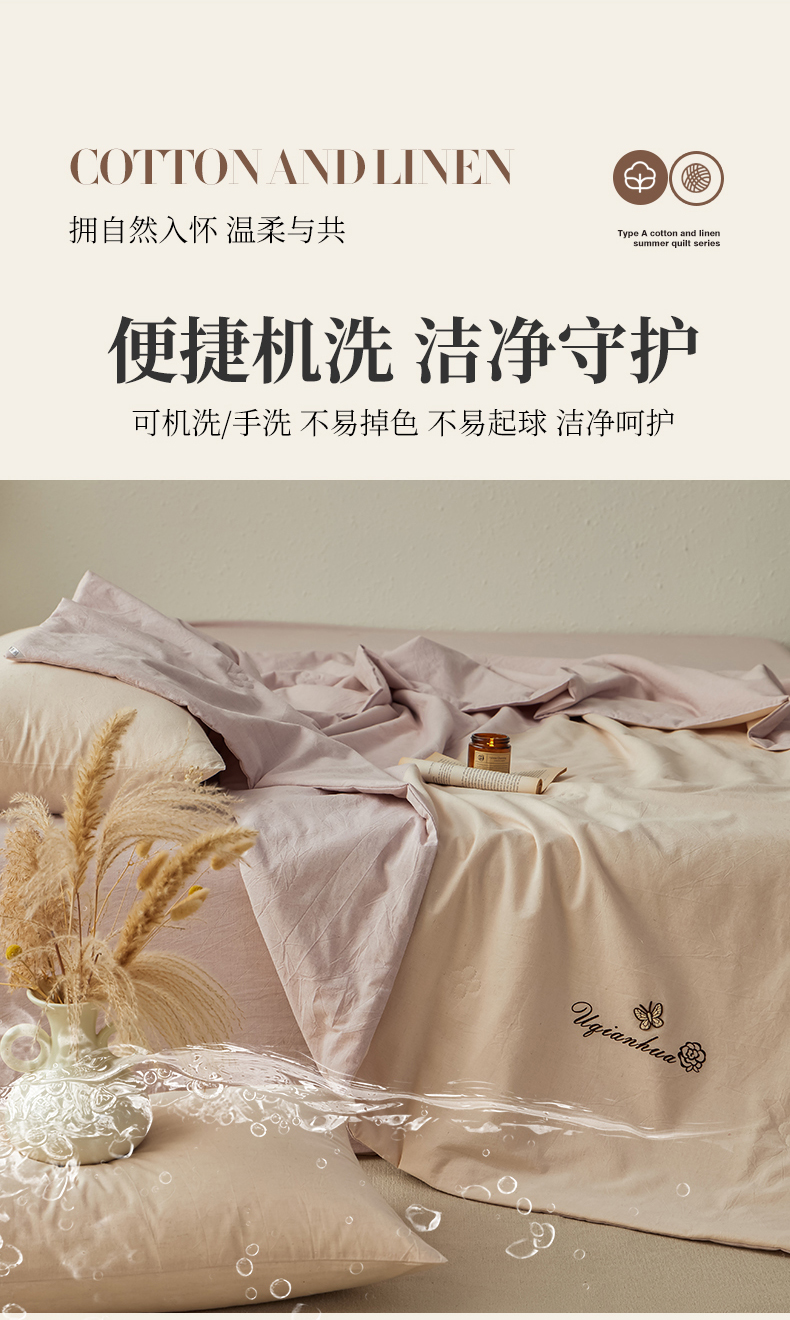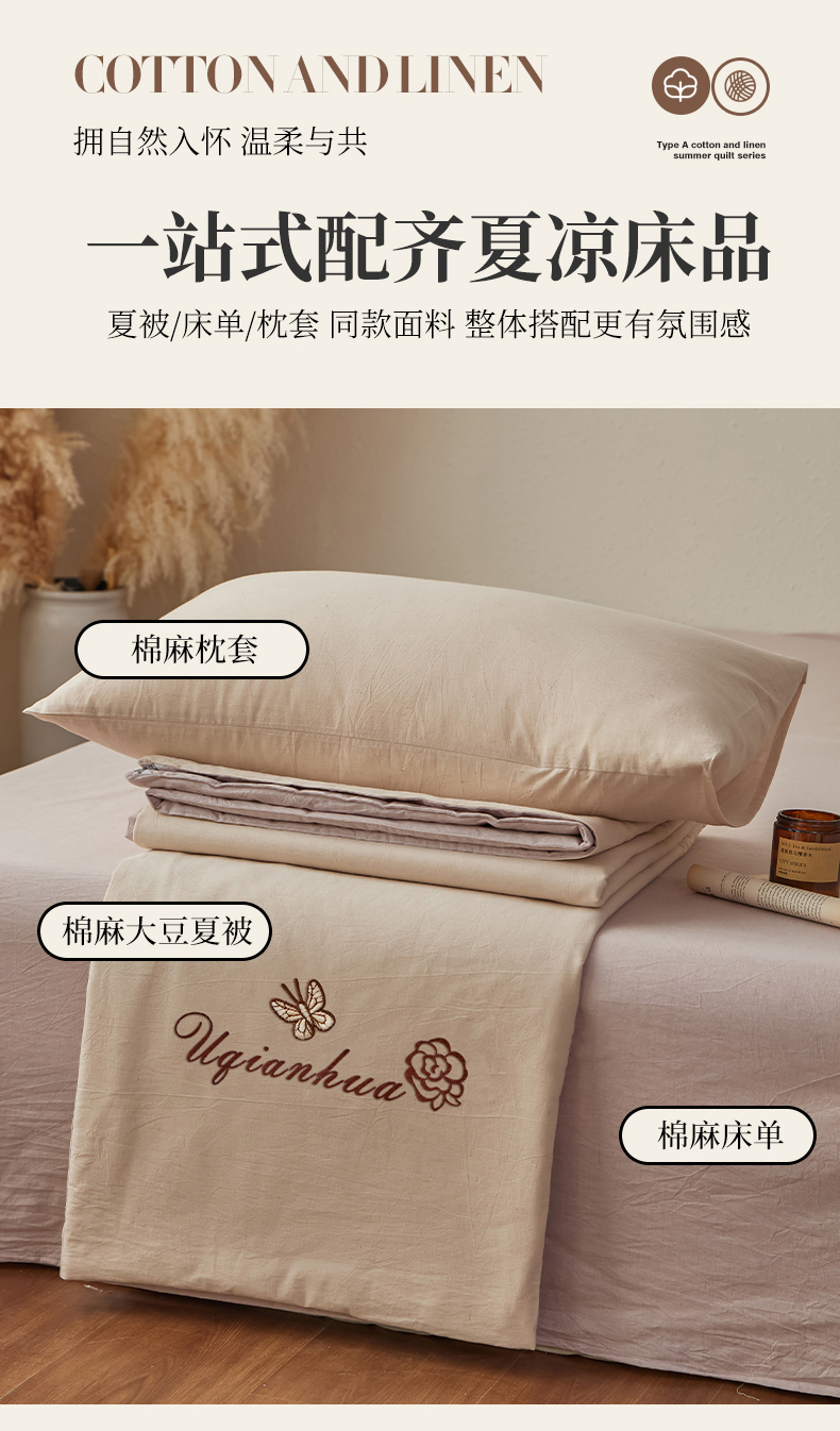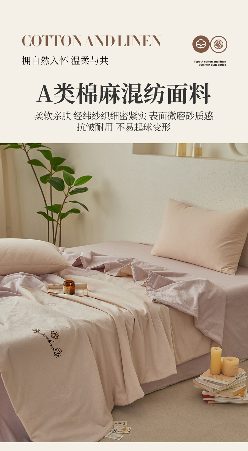 (总)尊妙被业 2026新款A类棉麻亚麻夏被大豆夏被四件套,棉麻 粉,棉麻 粉拼米白,棉麻 蓝,棉麻 蓝拼米白,棉麻 绿,棉麻 绿拼米白,棉麻 浅紫,棉麻 浅紫拼米白,棉麻 深灰,棉麻 深灰拼米白,棉麻 棕,棉麻 棕拼米白
