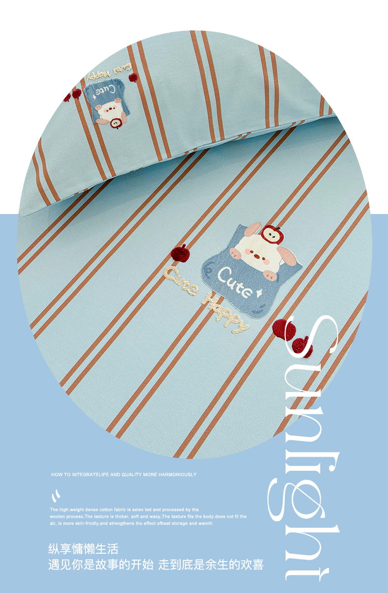 (总)卧趣家纺 2026新款A类100Pro贡缎全棉纯棉卡通毛巾绣四件套-场景一,波点维尼,七彩小熊,曲奇小熊,甜心萌萌,条纹俏皮狗,小星星