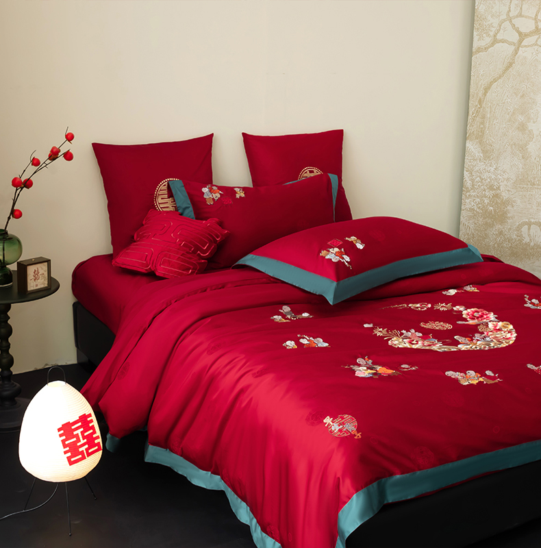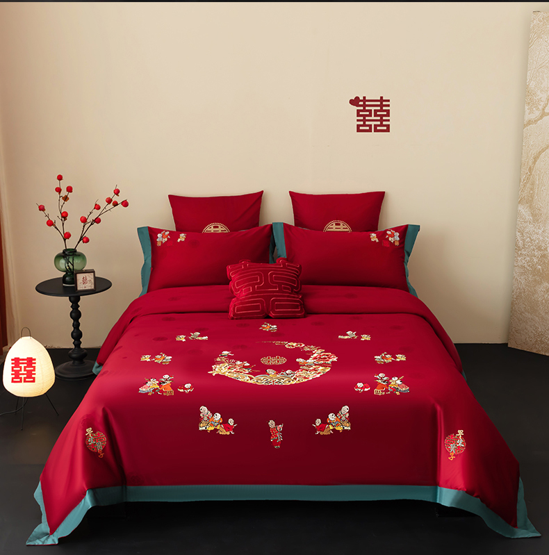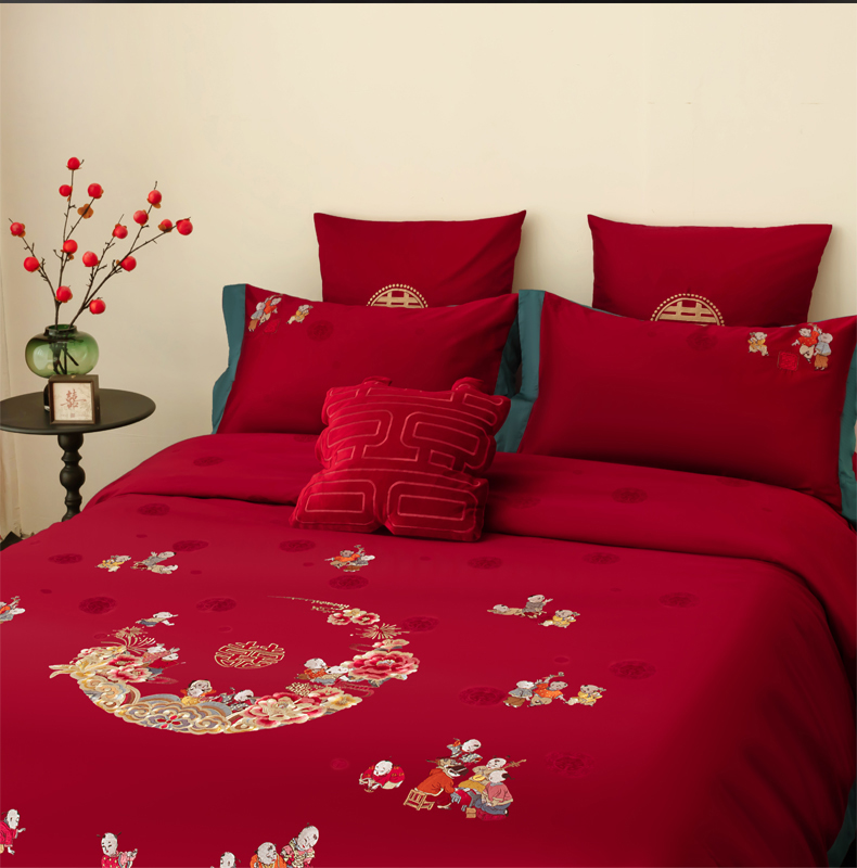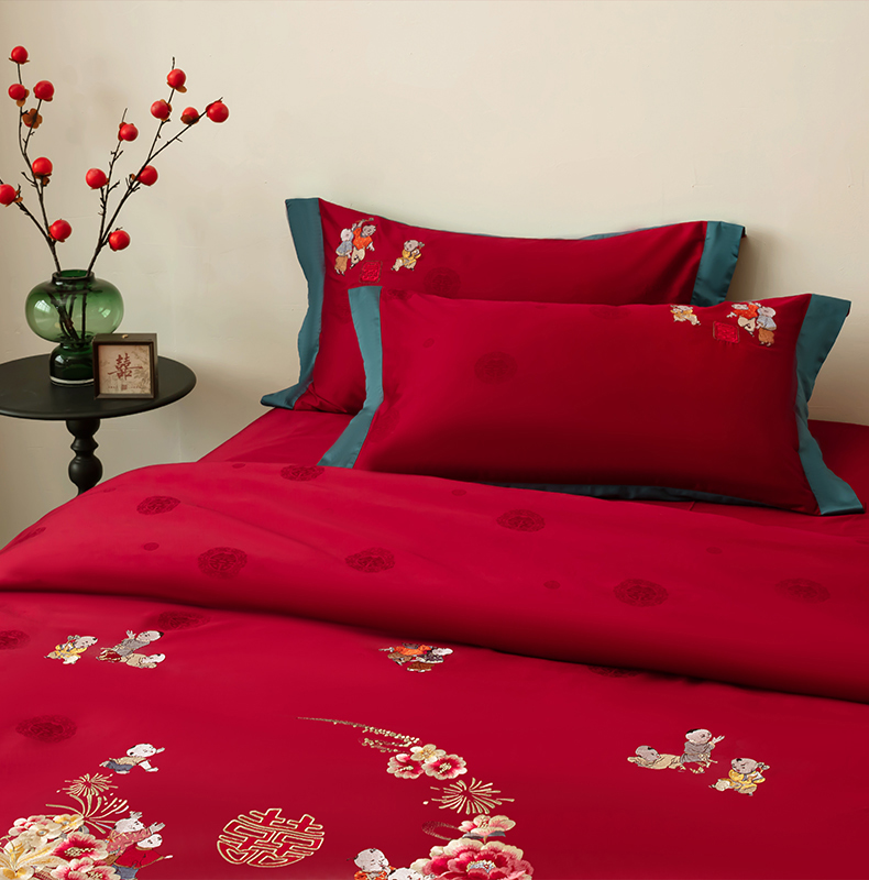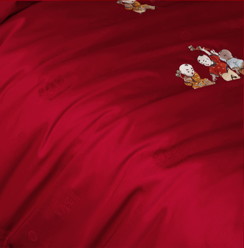 当前位置: 91家纺网 > 商品网购 > 床品套件 > 四件套 > 婚庆四件套 > 甜咪咪婚庆 2026新品婚庆50双股100支提花长绒棉全棉床单床盖款结婚四件套多件套 结婚需备品 百子闹喜