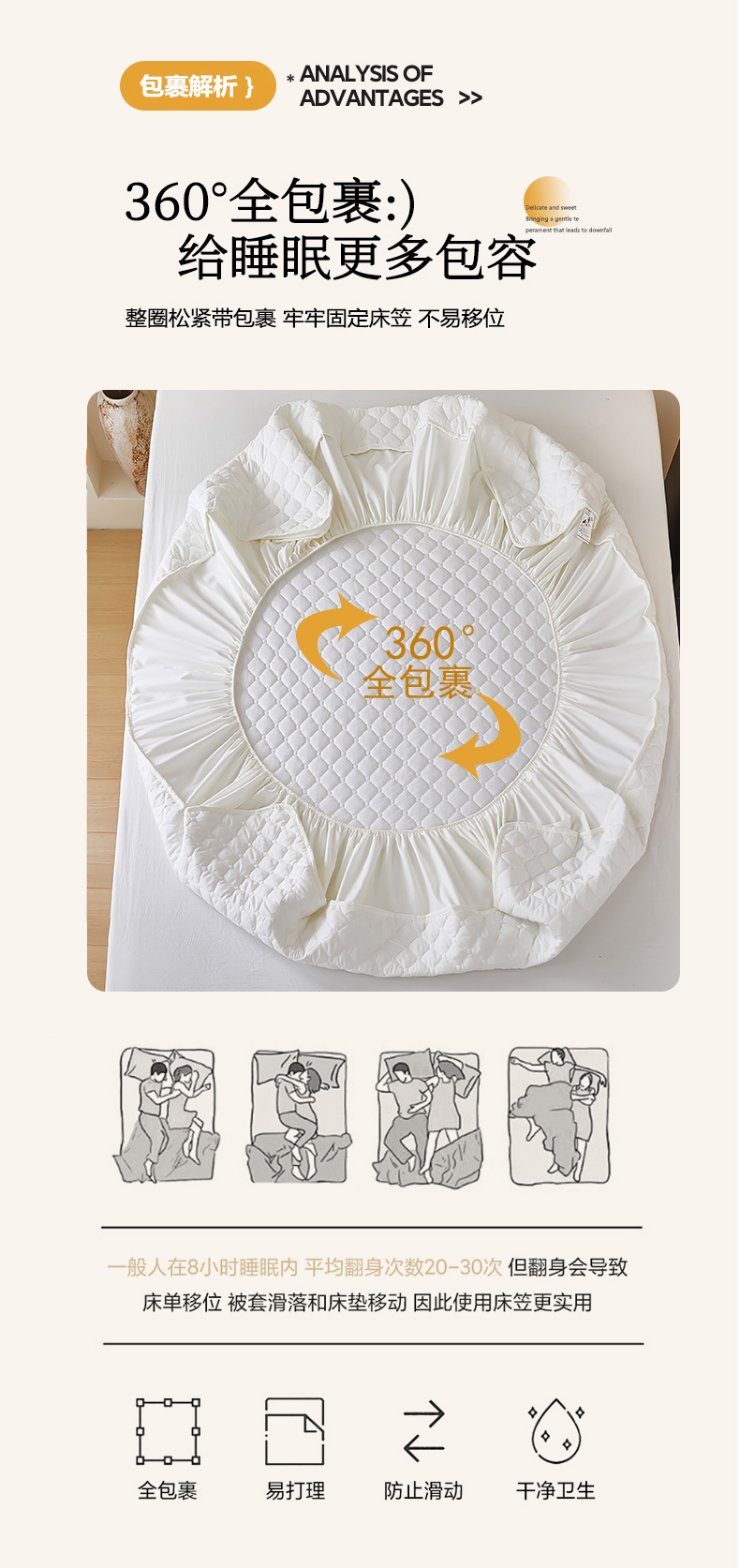 三盛源 2026新款防水夹棉床笠单件A类防尘隔尿罩家用单双人床垫席梦思全包保护罩-缤纷系列(支持小批量定制尺寸) 缤纷系列-象牙白