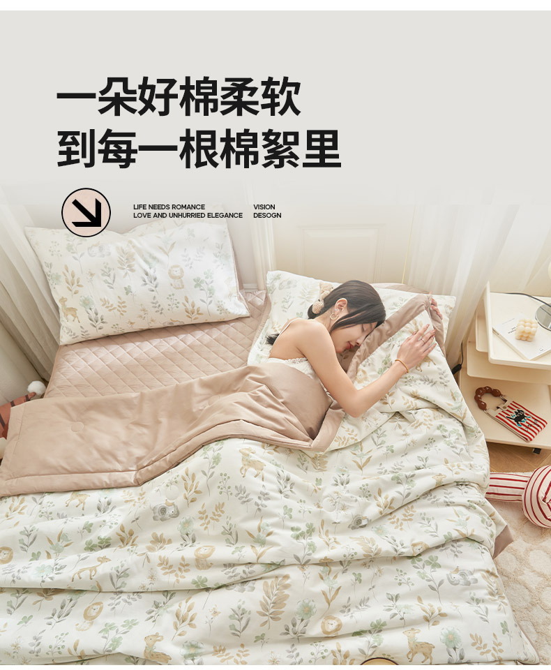 • 91家纺网 家纺一手货源 找家纺 绒城 2026新款 12868全棉印花棉花夏被四件套 全棉夏被四件套新疆棉花被 - 经典系列 林间萌友