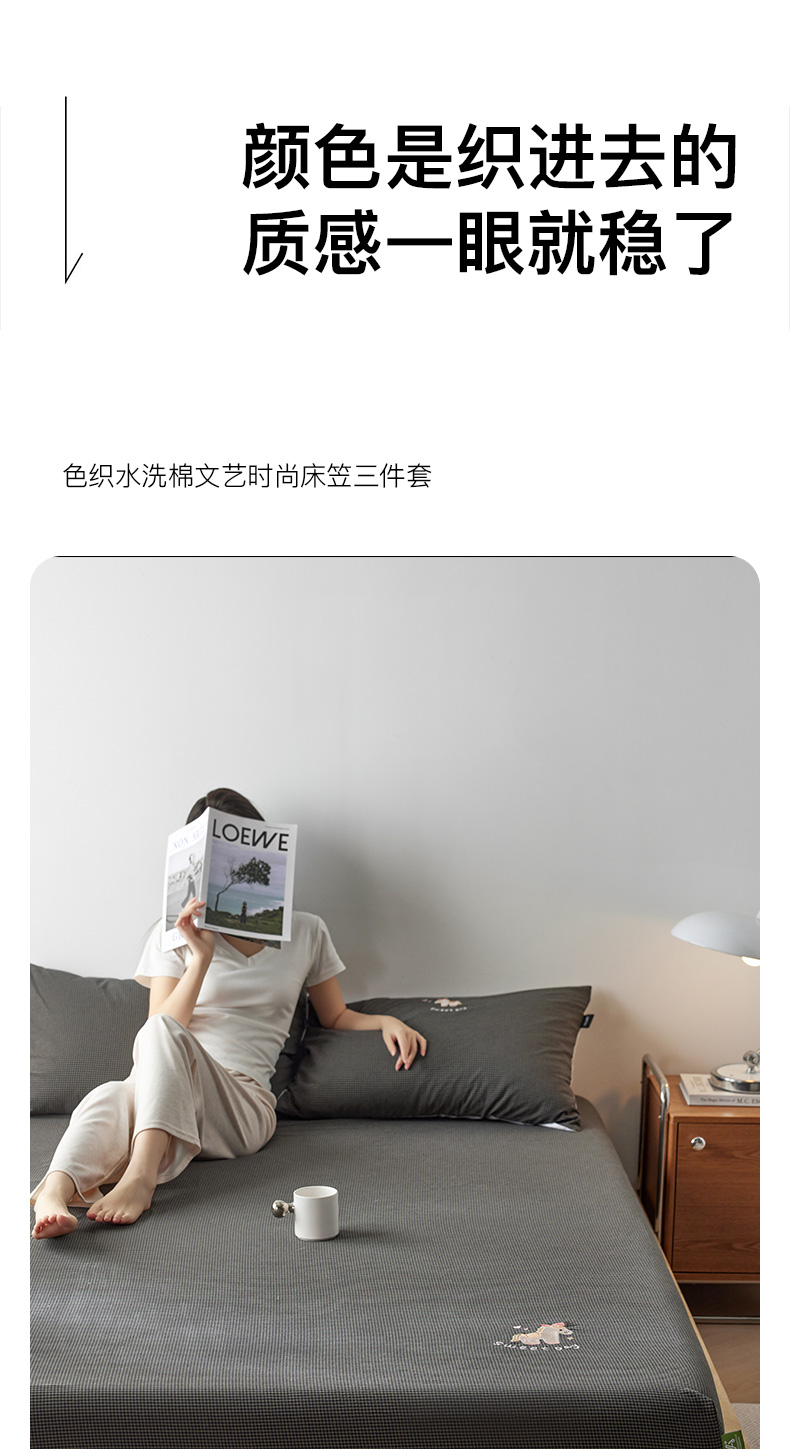 • 91家纺网 家纺一手货源 找家纺 卡姿家纺 2026春夏全棉色织水洗棉文艺时尚床笠三件套 床笠-马上幸运